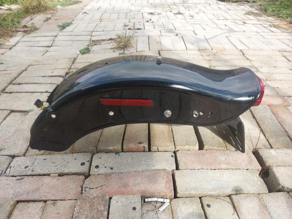This is a Harley Davidson Softtail BLACK Rear Fender with Taillight and low rise Sissy Bar included. This came off of a Harley Night Train, but will fit several softail models.