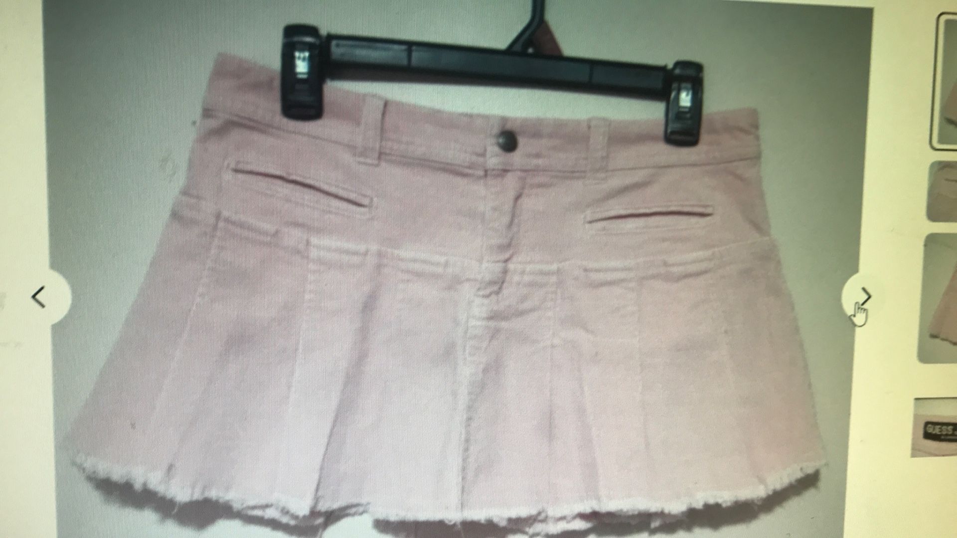 Condition: New without tags Skirt has NEVER been worn. The Guess Jeans Women's Medium Frayed Hem Pleated Front Zipper Pink Denim Mini Skirt is a stylish and versatile addition to any woman's wardrobe. Made from a comfortable blend of spandex and cotton denim, this skirt features a flattering mid-rise fit and a trendy frayed hem. The pleated front and zipper closure add a touch of flair to the solid pink color, making it perfect for both casual outings and travel. With its short length and skirt pockets, this mini skirt is a chic and practical choice for the summer season. Perfect for those who want a fashionable yet easy-to-care-for piece in their closet. Please see photos for condition and what you will be getting. Any Questions? Just message me. I'll be happy to get you an answer. Also feel free to make an offer.