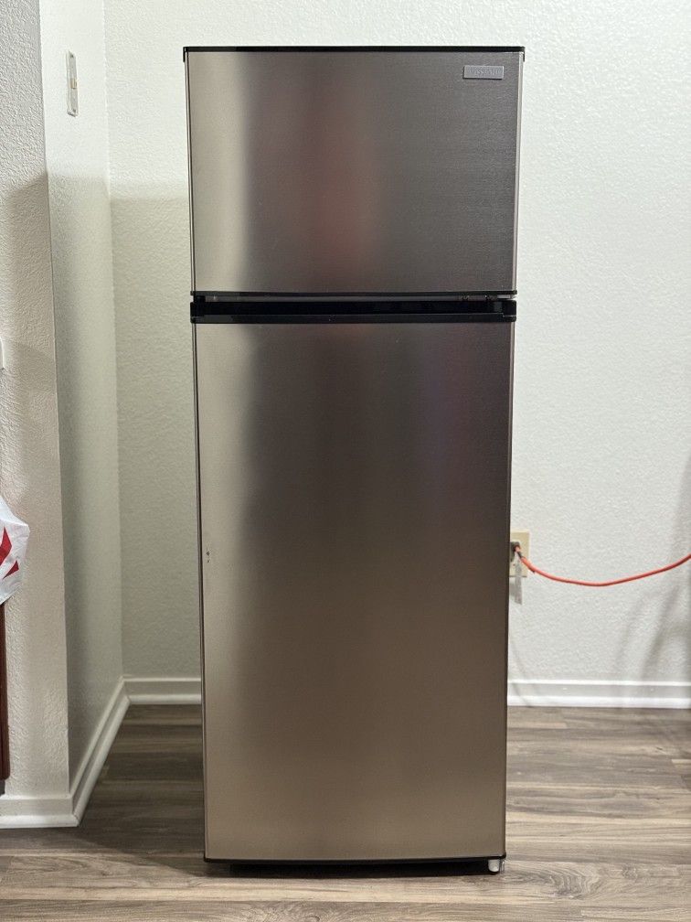 Vissani 7.1 cu ft Stainless Steel Compact Refrigerator/Freezer – Excellent Condition Selling a lightly used Vissani compact fridge/freezer in great working condition. It’s a tall mini fridge, perfect for apartments, dorms, offices, garages, or extra food storage. Features: • 7.1 cu ft total capacity • Separate top freezer compartment • Adjustable glass shelves • Large crisper drawer • Door storage with multiple bins • Stainless steel finish • Energy-efficient and cools fast • Clean, no odors, and fully tested Condition: – Works perfectly – Very clean inside and out – No issues Model: MDFF7SS Pickup only. Let me know if you have any questions or want to come check it out!