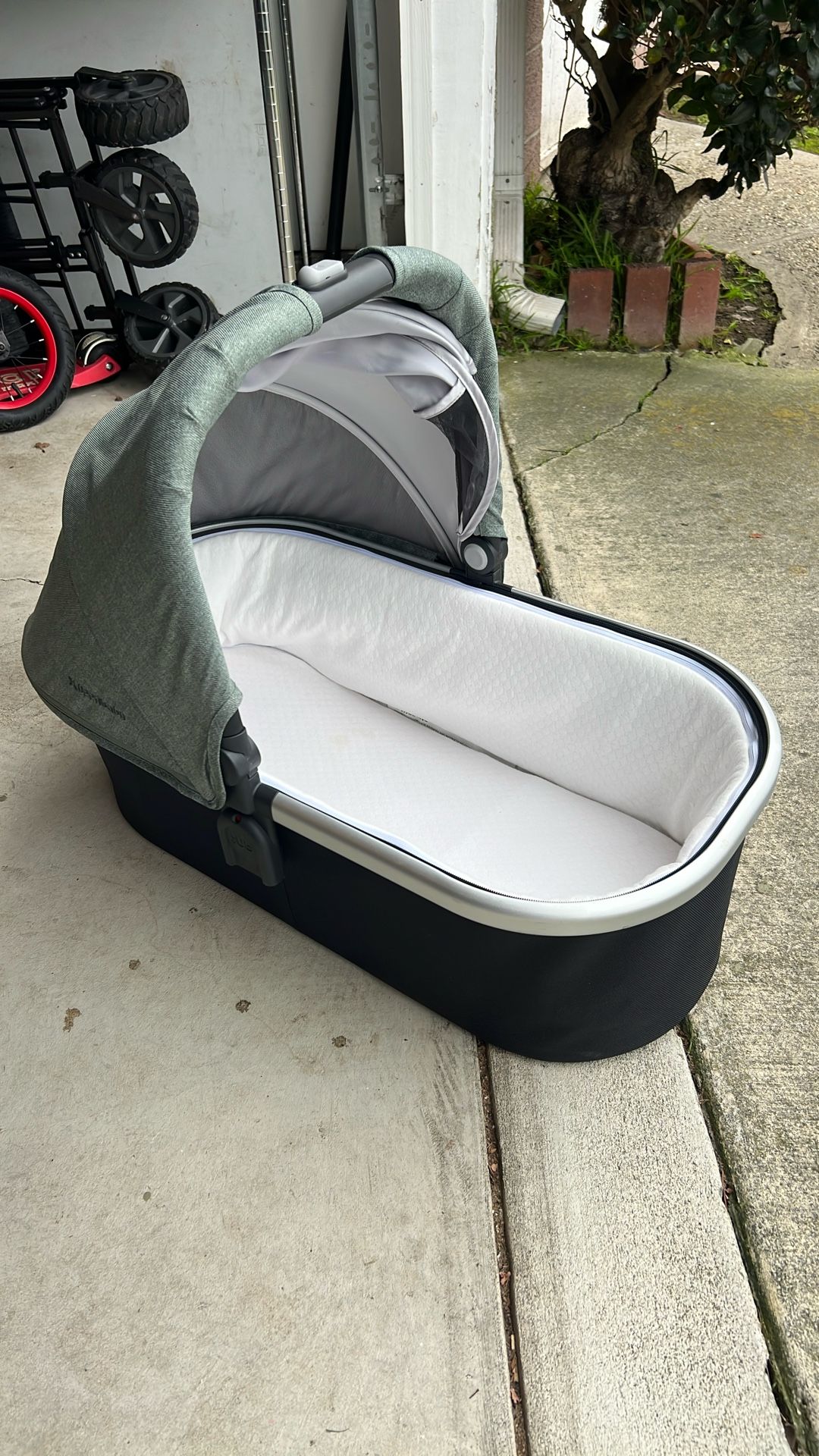 UPPAbaby Bassinet – Excellent Condition Lightly used, super clean, smoke-free home. Perfect for newborn walks and safe overnight sleep. • Fits UPPAbaby Vista / Cruz (adapter may be needed) • Mattress + cover included • Pop-out sunshade, easy click-in • No stains, no smells