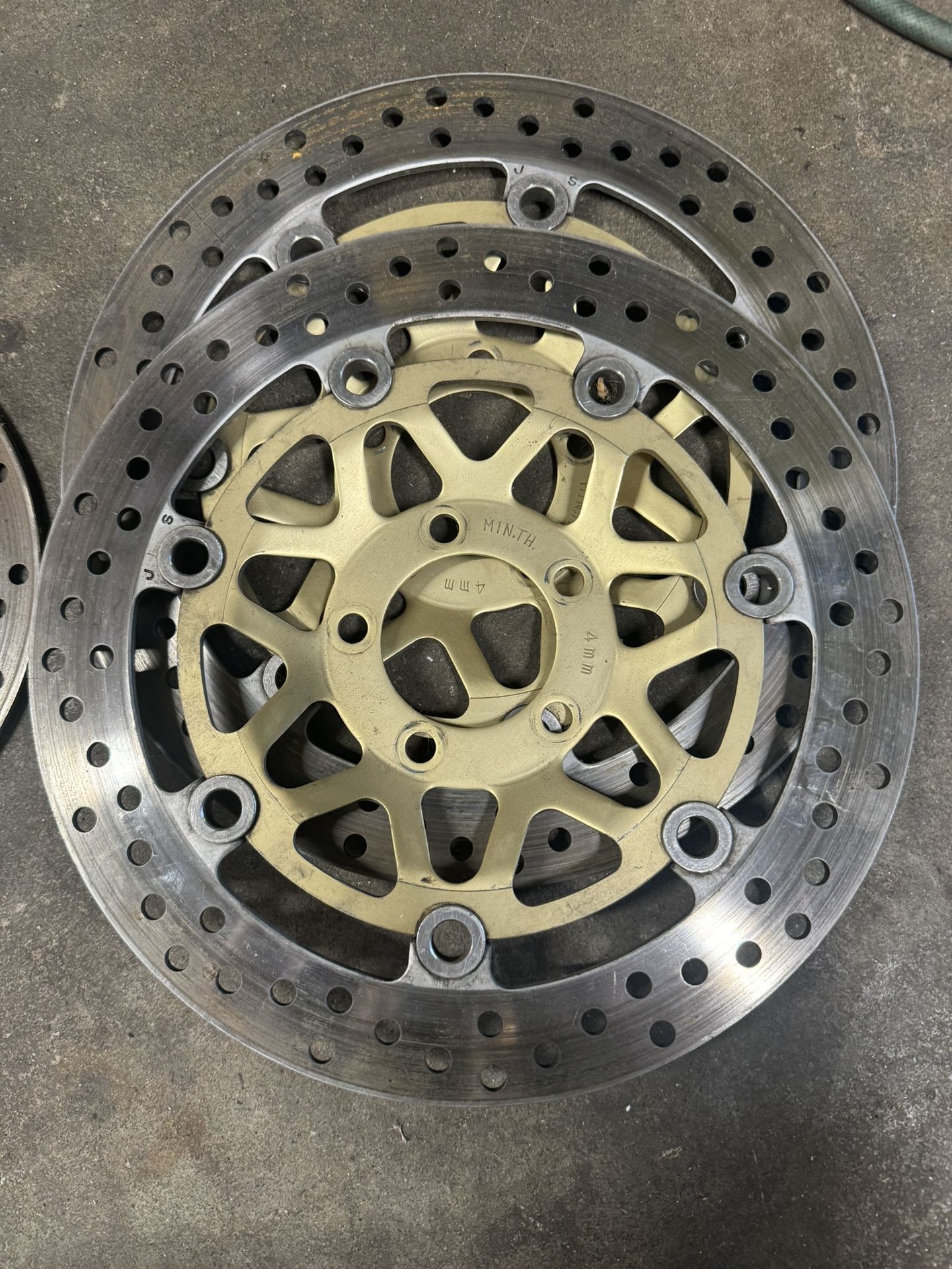 Have both front rotors and the rear rotor. Came off my Ninja @ 20k ish miles. Still have plenty of life in them. Make an offer just getting rid of old parts cluttering up the garage