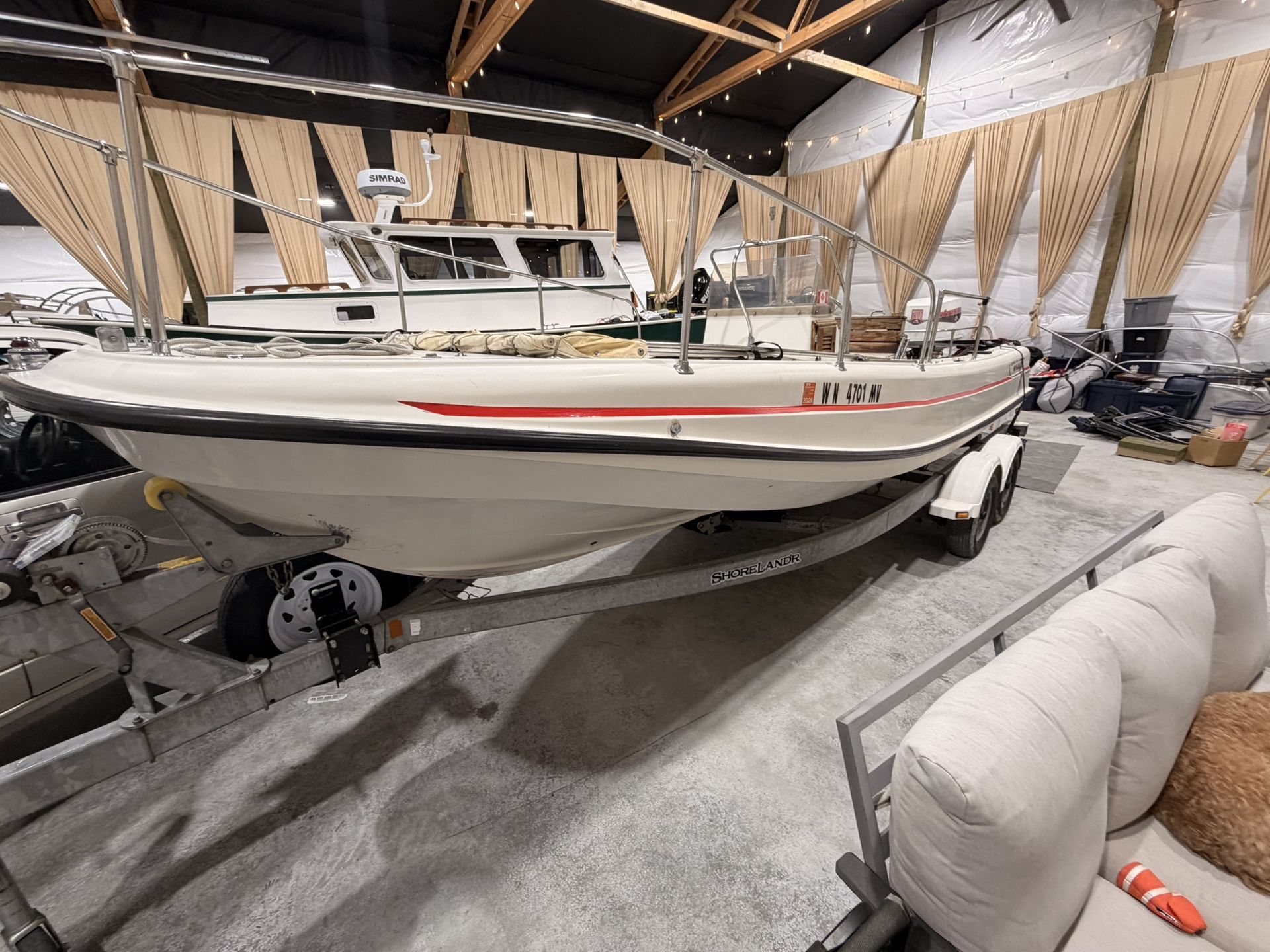 1979 21 ft. Boston Whaler Outrage and 1991 double axle Shoreland’r trailer. Boat mechanically and electrically redone at Bayside marine. Trailer serviced by SnoCo Trailers. Newer Lowrance Fishfinder/Depthsounder. New manual and float pumps. Both batteries solid. $5000 in redo on motor including complete fuel system and starter. Bimini and frame for bow canvas rough, but intact. Night light inoperable, but only need rewire. New Scotty plugs in bow and port/starboard for fishing. Boat and trailer are solid as a rock. Goes 40 mph. Fishing and tubing machine. All reasonable offers considered. $16500 obo
