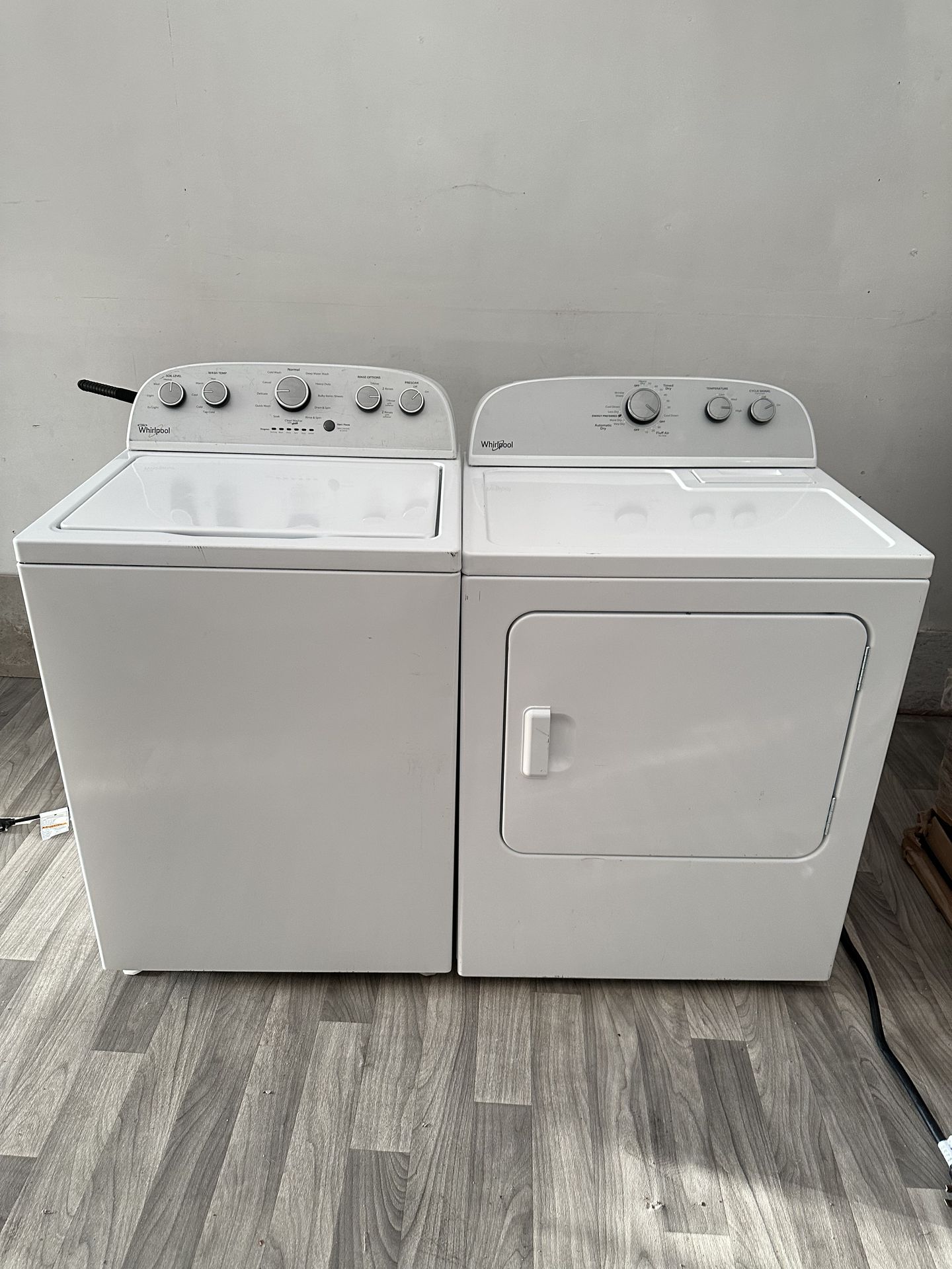 Whirlpool washer and electric dryer everything works good, no issues Clean inside and out Free delivery and setup