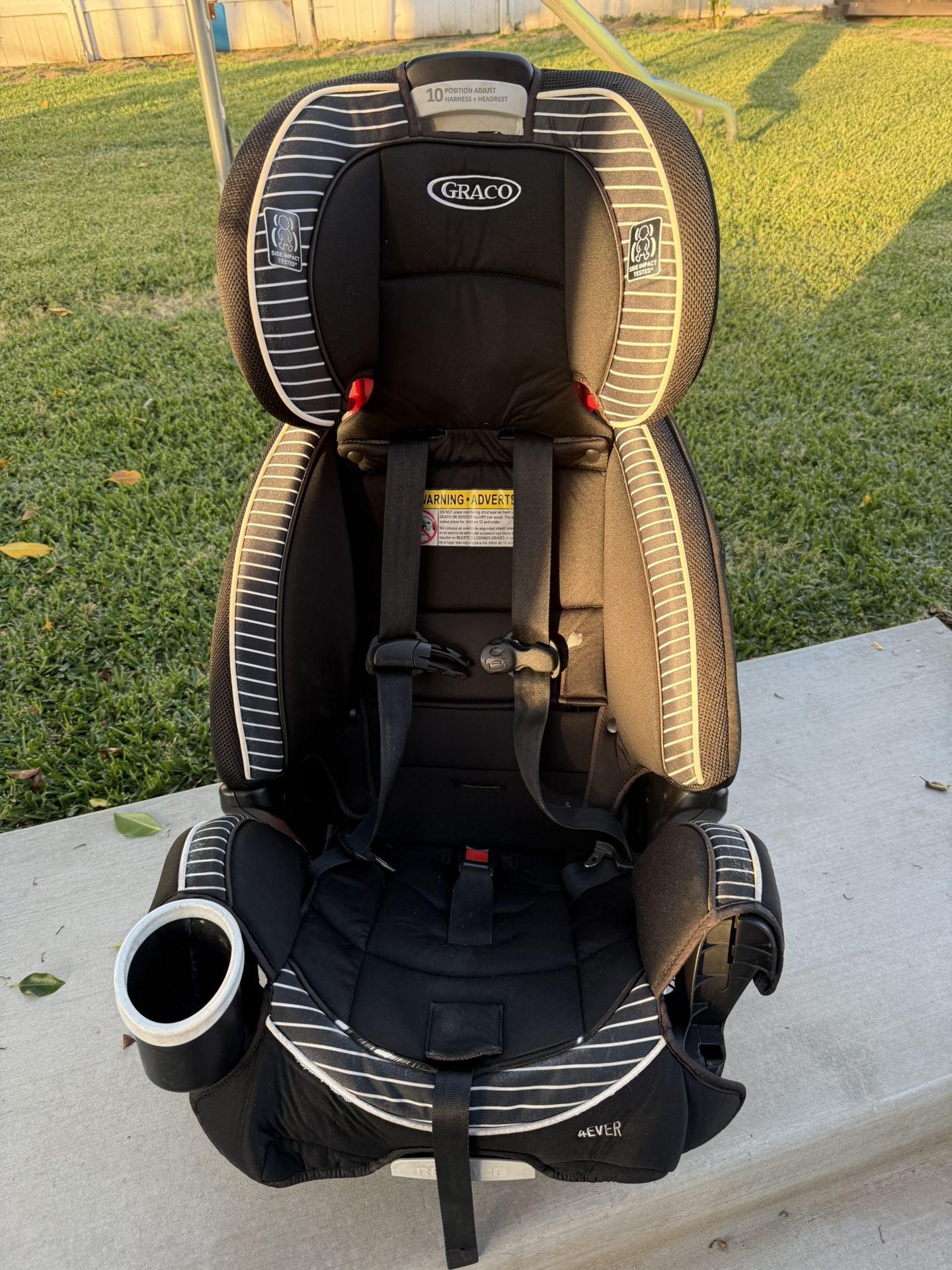 Graco car seat can be used in different ways. Forward facing Rear facing High back booster Backless booster It shows signs of wear on the actual seat with some fading but the back rest is in pretty good condition ,see pictures. I just took it apart and washed it. It is missing a cup holder. Pick up in East Whittier.