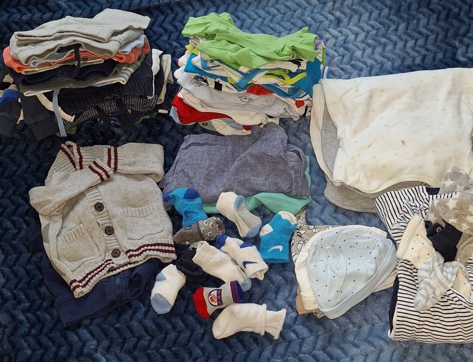 All items are in good good condition some are new never used Including: 12 pants 2 shorts 4 swaddles 10 socks 8 short bodysuits 6 long bodysuits 1 T-shirts 1 shirt 4 hat 5 pajamas 2 jackets
