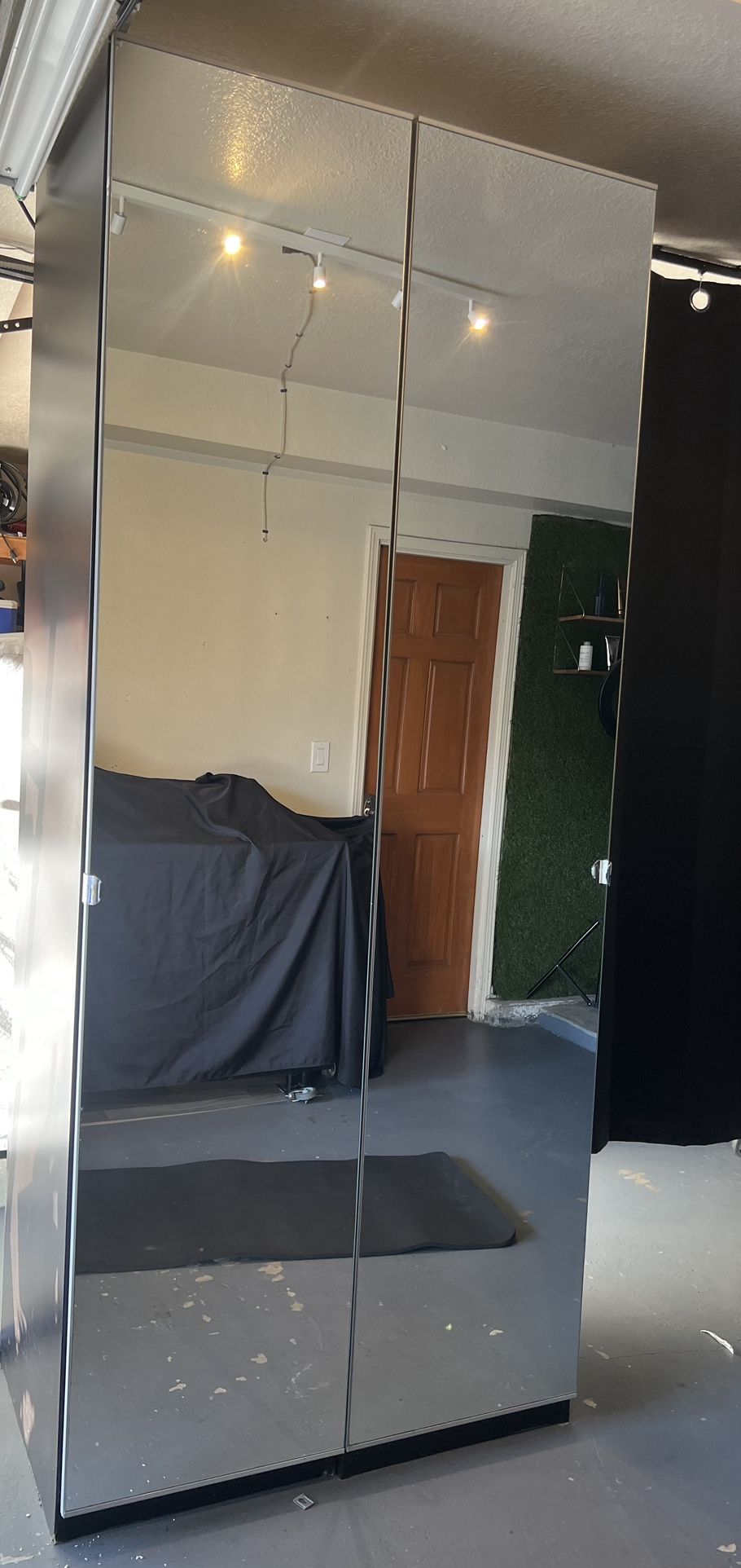Dark brown full length mirror storage cabinet H 93” /W 23” (Front size to size 40 “)( laminated wood ) There’s two cabinet storage