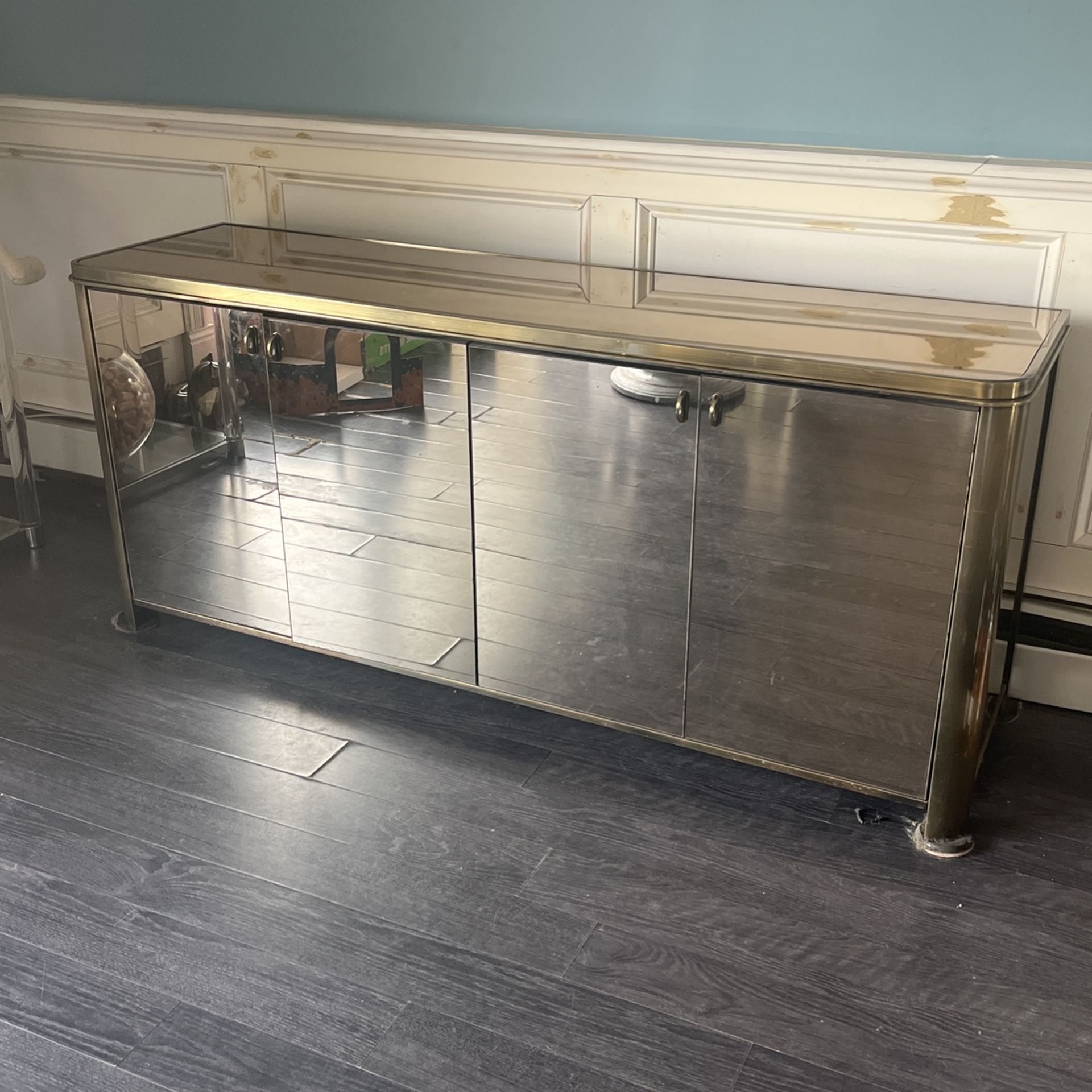 Mirrored and brushed brass credenza.- super heavy. I’m changing the living room and it no longer works in the space.
