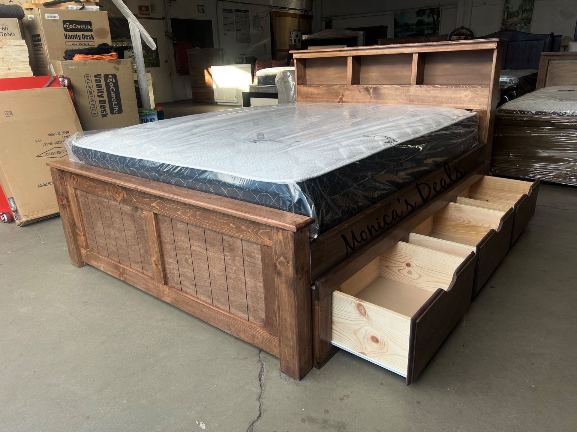 Queen Solid Wood Bed With 3 Drawers And Mattress $740