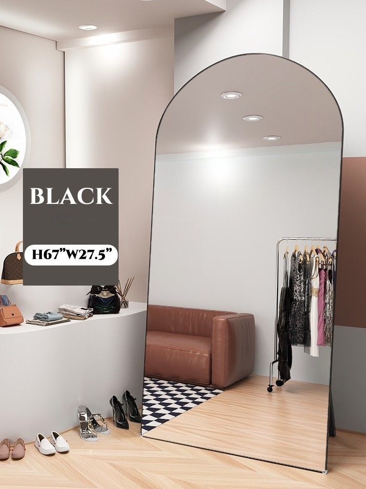 Arched Full Length Mirror, L67in. W27.5in. Floor Mirror with Stand, Arched Wall Mirror Full Length, Large Standing Mirror Full Length, Wall-Mounted Mirror Bedroom Living Room, Aluminum Frame, black Dimension: H67" W27.5" 【LARGE SIZE】: The mirror has a X-Large size of 67 inches in height and 27.5 inches in width, providing a clear and comprehensive view of your entire body from head to toe. 【HIGH-QUALITY GLASS】: The mirror is made of high-quality glass that ensures clear and distortion-free reflection. 【Explosion-Proof Film】The mirror is fitted with explosion-proof film to keep the mirror connected when it is broken and avoid the generation of small fragments 【VERSATILE】: The high-quality aluminum frame is a blend of modern minimalist and industrial styles, making it suitable to pair with brightly colored or luminous furniture. This Large mirror is perfect for a variety of settings, such as bedrooms, living rooms, hallways, and dressing rooms. It can be used for both personal grooming and outfit checks before heading out the door. 【GUARANTEE】 We utilize a special enhanced designed package to ensure the safe delivery of your mirror. Our aim is to assure you of your satisfaction and we have full confidence in our products. If you have any questions or concerns, we are here to help you promptly. GX-FG-FBGM-70170H