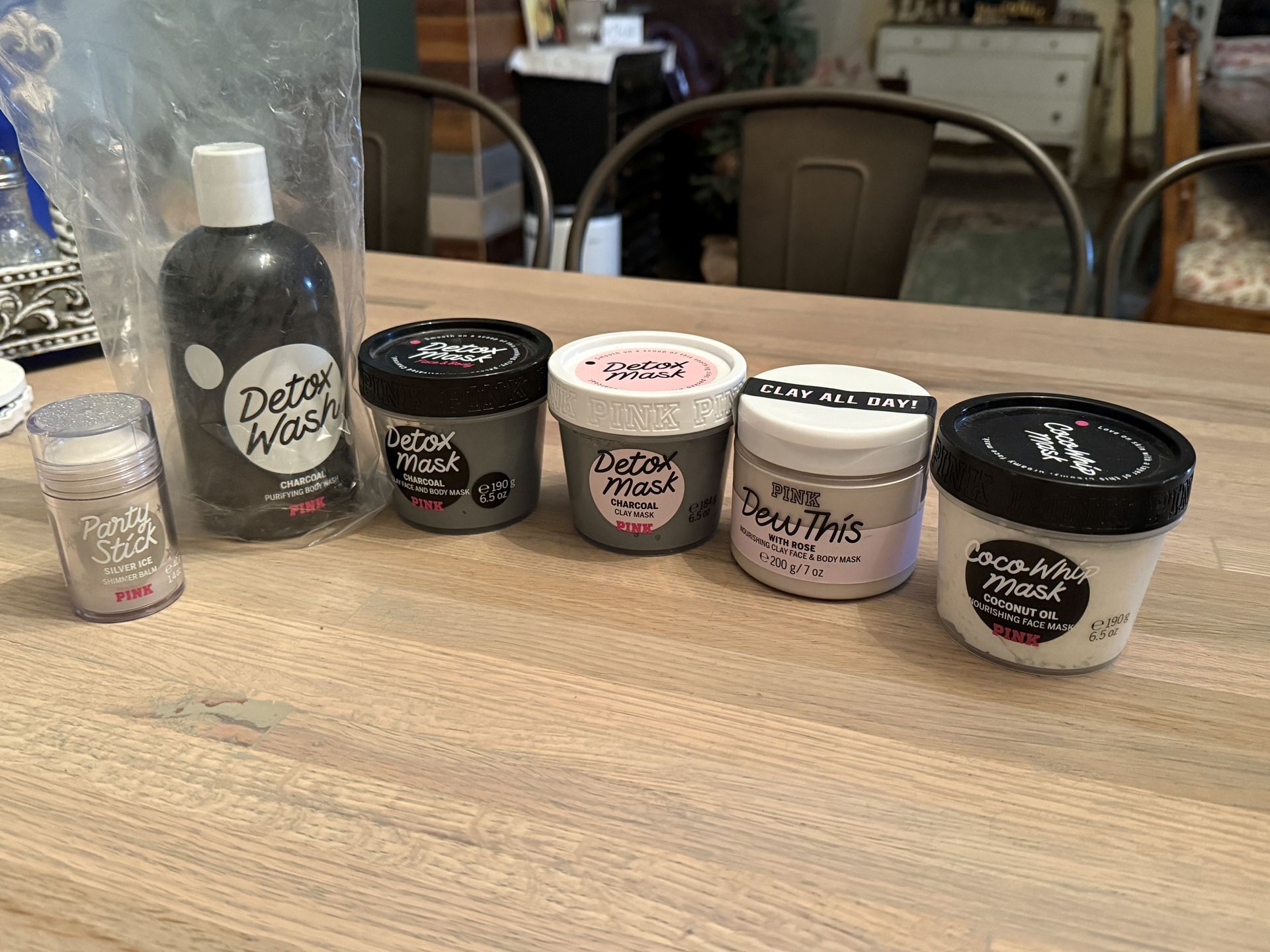 Pink by Victoria’s Secret - Beauty Products All Brand New - Prices are as follows - 1. Party Stick SILVER ICE SHIMMER BALM $7.00 2. Detox mask CHARCOAL CLAY FACE AND BODY MASK $7.00 each (Have 2) 3. Dew This WITH ROSE NOURISHING CLAY FACE & BODY MASK $7.00 4. Coco Whip Mask COCONUT OIL NOURISHING FACE MASK $7.00 5. Detox Wash CHARCOAL PURIFYING BODY WASH $7.00 I’m Downsizing due to Remodeling - Follow Me To See Other Items Pickup on North Side of Ofallon,Mo close to Hwy P & St. Paul Road First Come First Served No Holds Cash at Pickup Listed on Other Sites