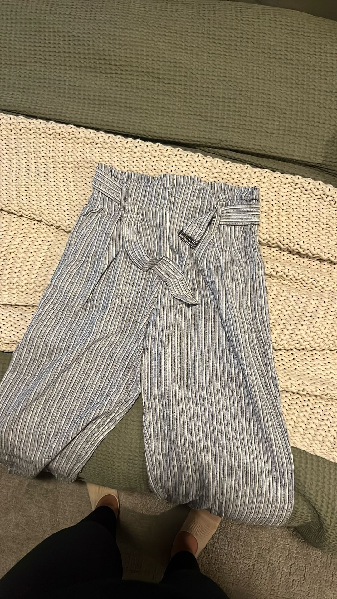 Wide Leg Petite 0 Banana republic trousers Baby blue with black and white striped design Lightly used (3 wears) Adjustable buckle