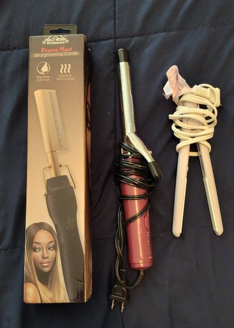 Hot comb $4 Curling iron $3 Mini straightener (brand new but no box) $4