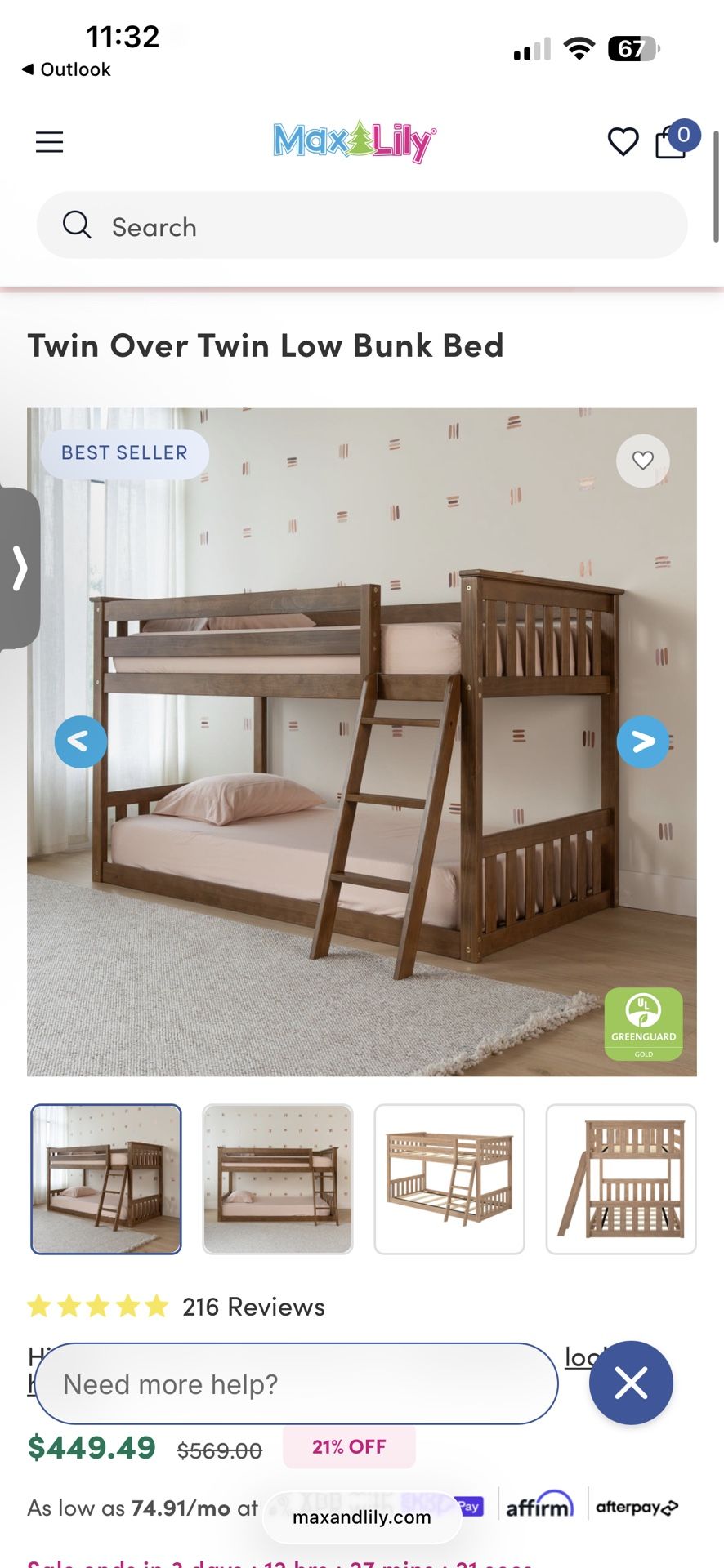 Twin Over Twin Low Bunk Bed