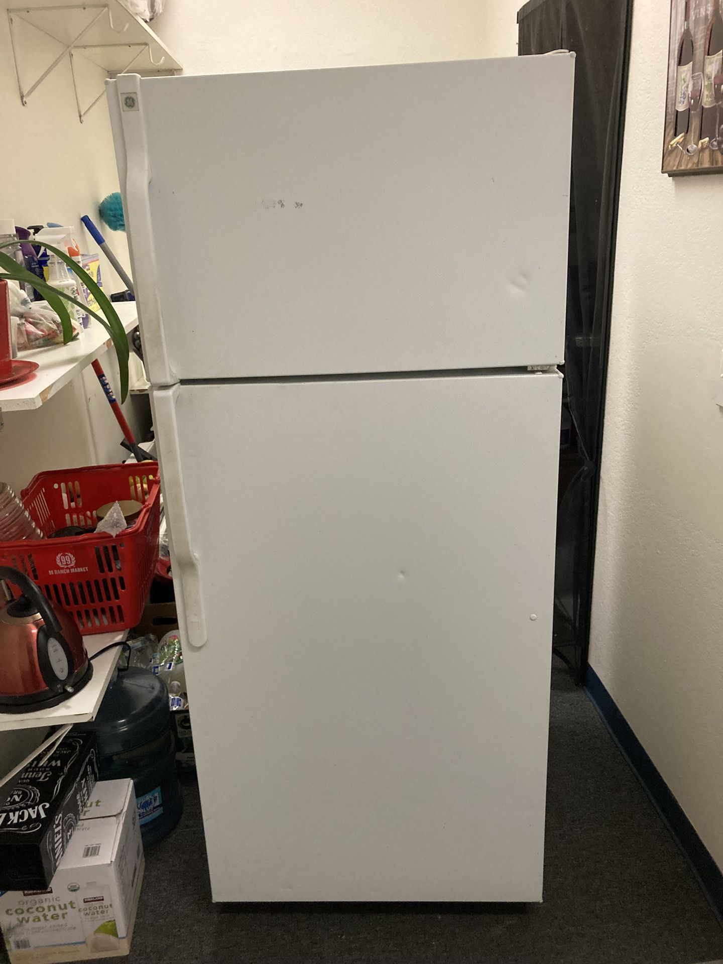GE refrigerator with top freezer and lower refrigerator unit; freezer works well; lower refrigerator area does not cool properly and will accumulate slight moisture when running H - 66” X W - 32” FREE to haul away