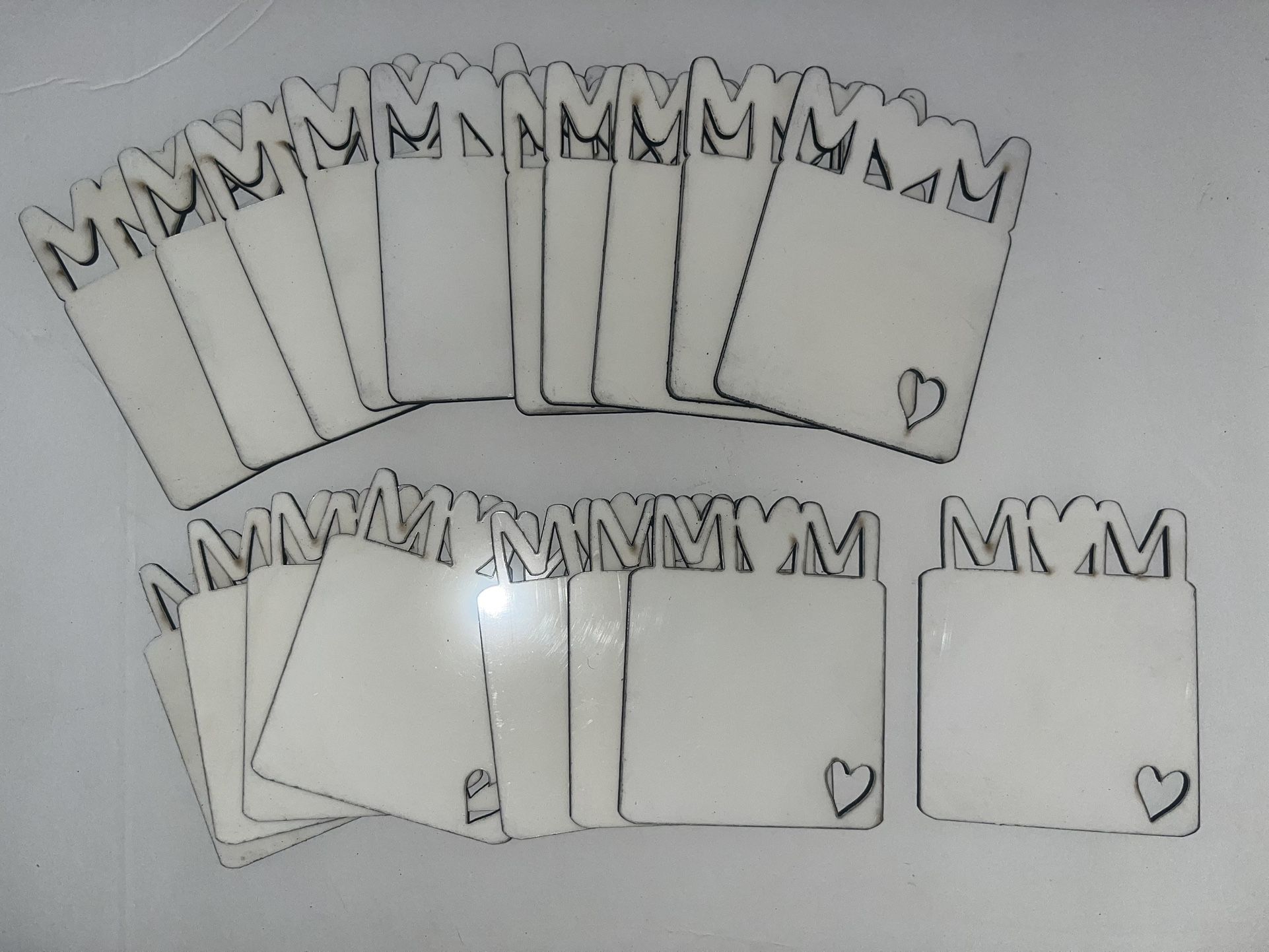 18 Mom sublimation blanks. Each has a protective plastic cover. Print well. Makes a great Xmas gift, Mother’s Day, Birthday, etc. i hot glued magnets on the back to make them into magnets.
