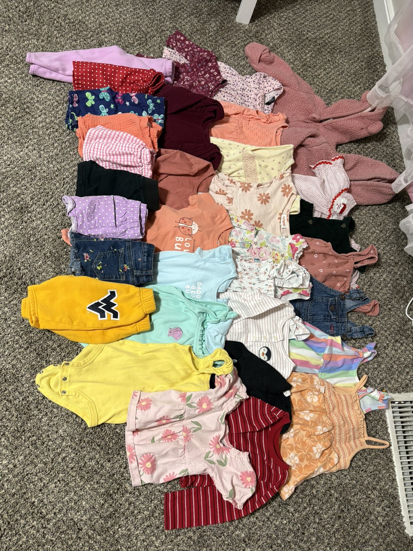 Snow suit & jacket 5 jumpers/overalls 9 dresses 14 long sleeve 6 short sleeve 5 pant 8 shorts 6 pajamas