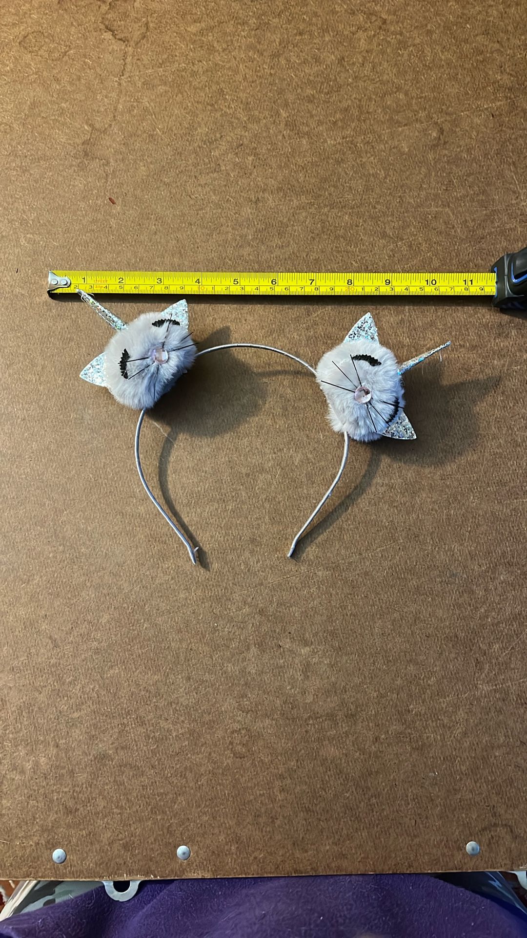 Gently displayed fuzzy and sparkly cat, unicorn mashup, headband, adorable pink jeweled nose