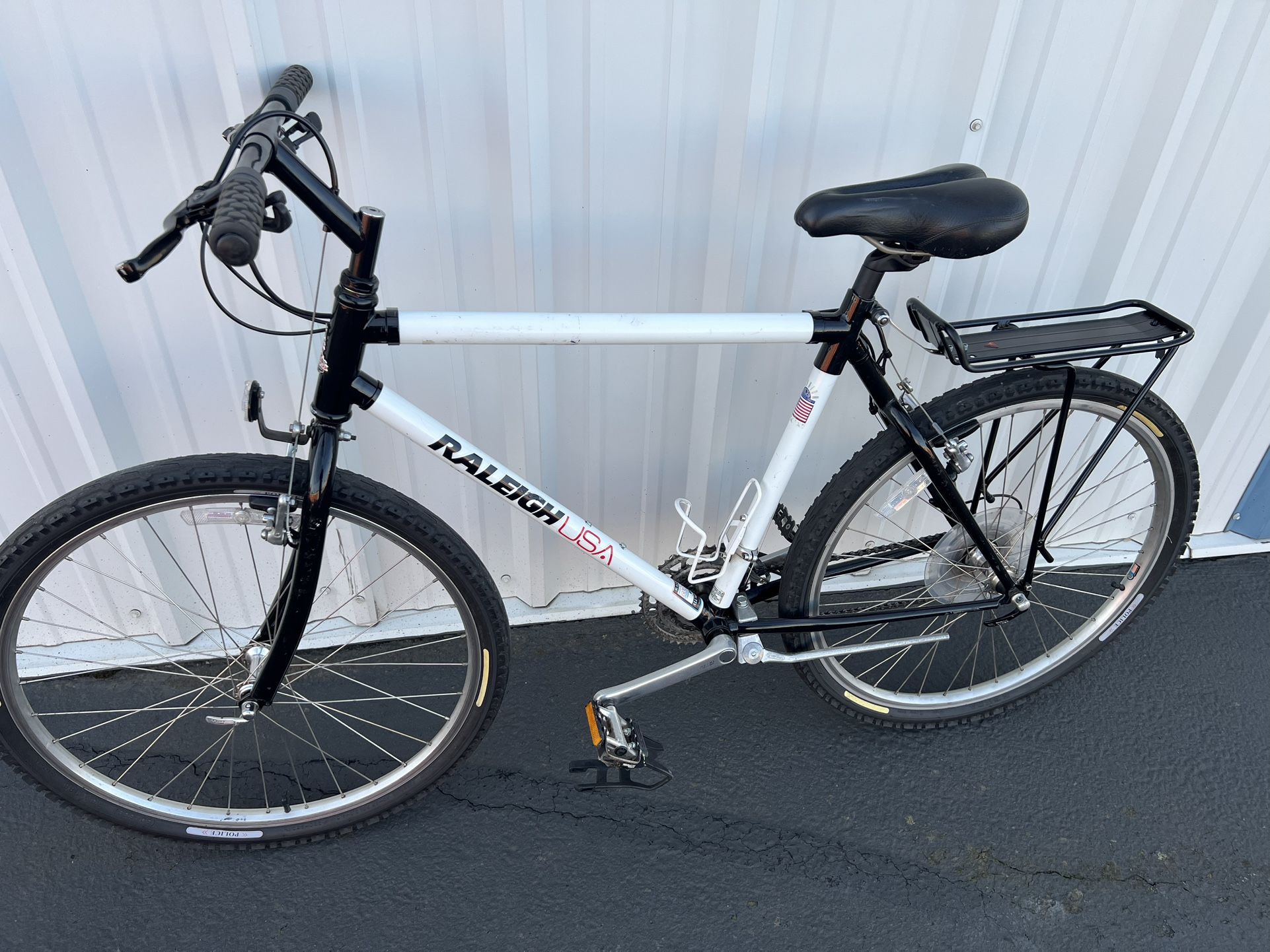 Raleigh USA Hybrid Bike 20” Aluminum Frame, Shimano 21 Speed, New Cables and Housings, Rear Rack, Bottle cage, Kickstand. Some Cosmetic scratches and sticker residue on the frame. $125 Cash