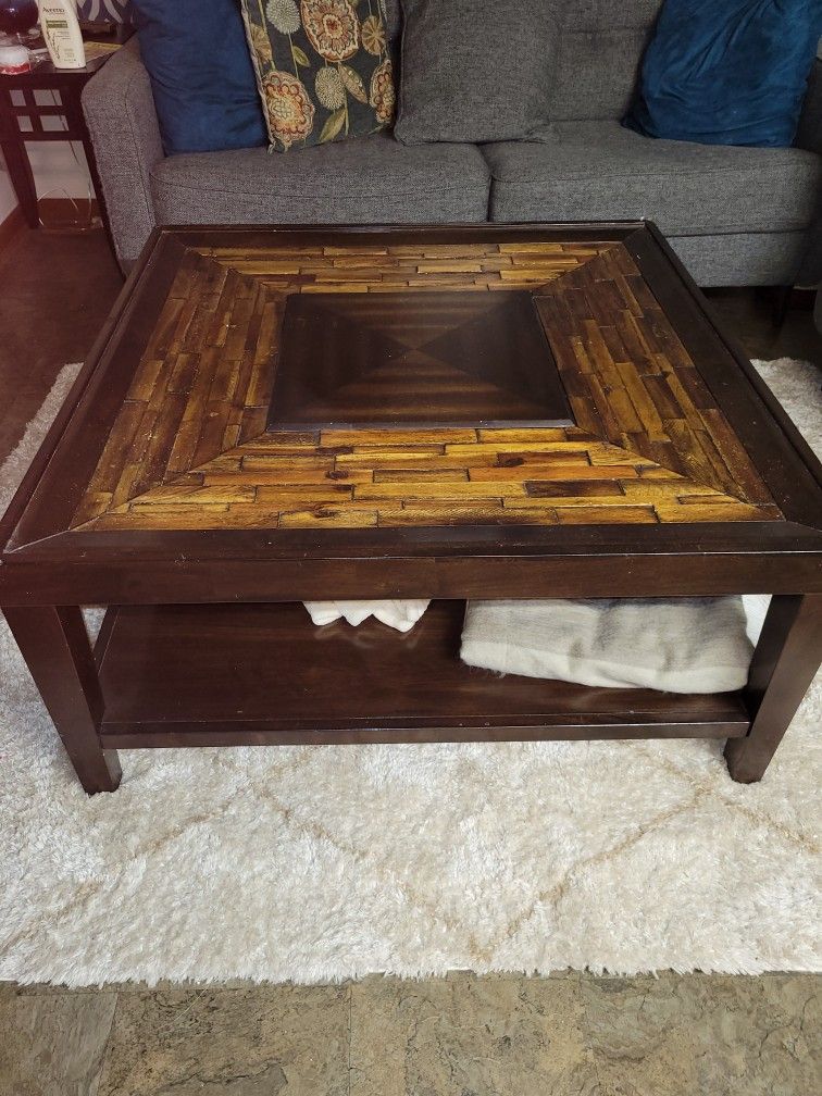Awesome coffe table with storage underneath. Need gone asap flexible on price. Moved and it's too small for the new place. It is very heavy so bring help please.