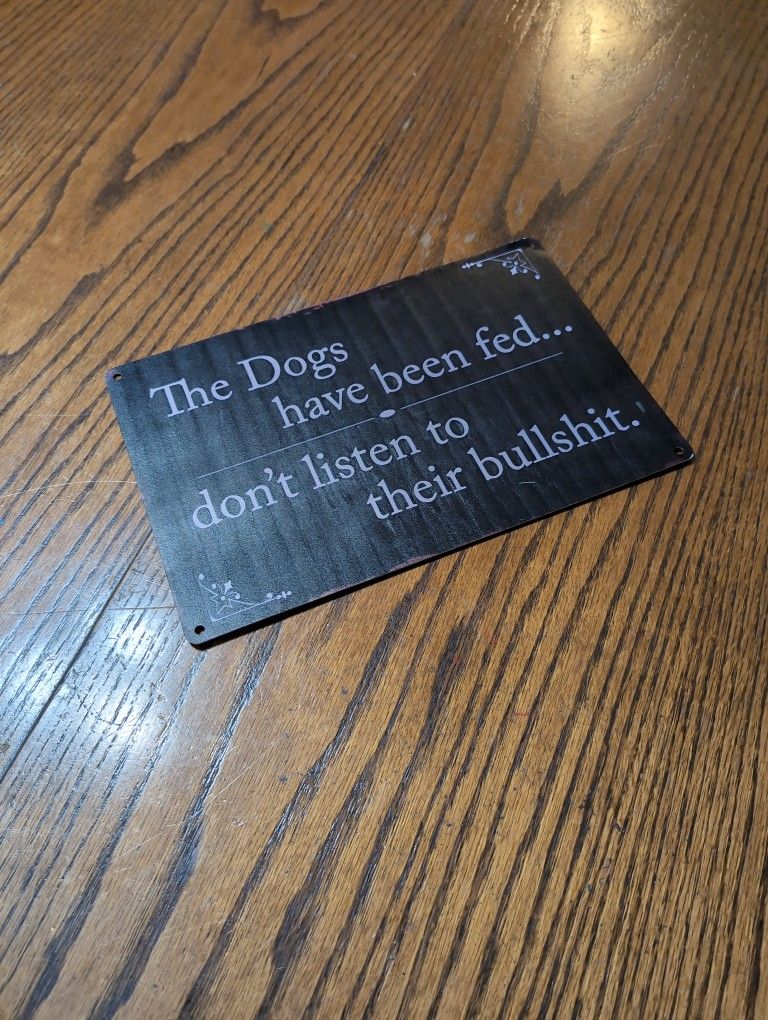 Cute sign for kitchen are anything. It has a cute saying the dogs have been fed ... Don't listen to their Bullshit