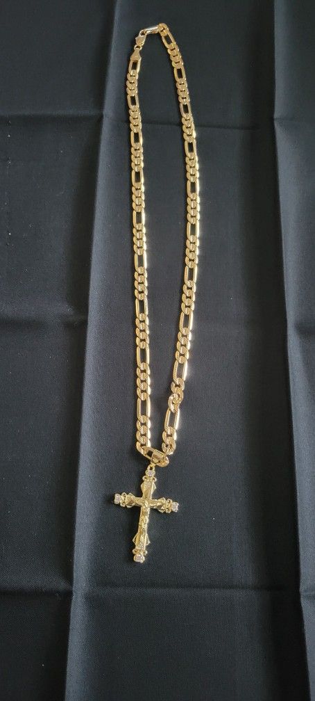 - Gold Plated over Silver - Figaro Design - Length = 24 inches - Total Weight = 49.9 Grams - Chain - 31.4 - Charm - 6.5