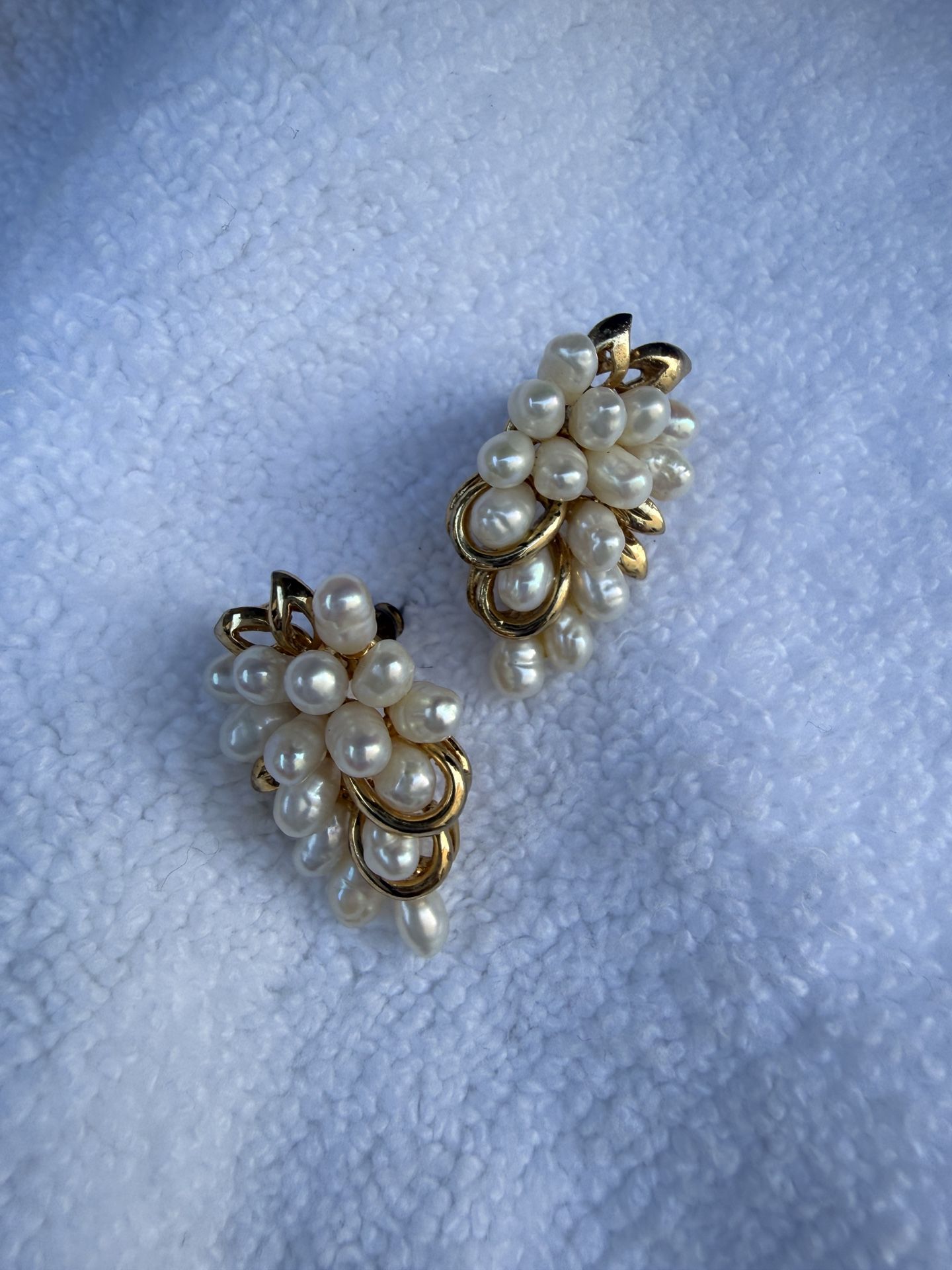 vintage 14k yellow gold freshwater pearl cluster stud earrings