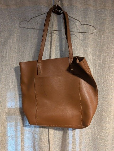 Barely use Henny & Lev bag, doubles as tote and over shoulder (long strap included), made with sustainable vegan leather Great condition though there are some light skid marks due to storage, but no scratches