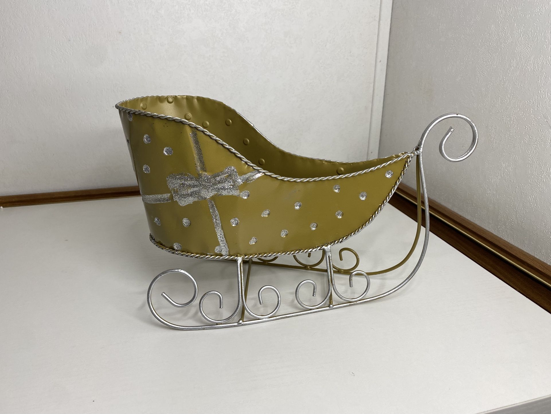 Gold & Silver metal sleigh V front cut outs floral arrangement craft room decor