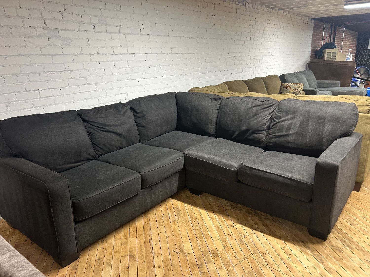 Delivery available options🚚 (1-20miles) 50$ Home delivery- your assistance required 100$ Home delivery - we handle everything no assistance Item + sales tax - throw pillows and blanket not included -The couch has been shampooed, vacuumed, and steamed cleaned -smoke free, no rips or tears, and no stains -first come first serve, can hold for a down payment -can accept cash, Zelle, credit or debit, all sales are final -Located near downtown in the Grower’s District 🌳Here at Better Couch our mission is to give new life to used couches and sectionals, and save them from going to landfills. All while giving you a simple and easy buying experience 🌳 🚨99% of my inventory sells within an hour to our “first dibs” Facebook group! Join our exclusive Facebook group “Better Couch Family” to get first dibs on all our new inventory! Dimensions: L90” W90” depth 38” H33”