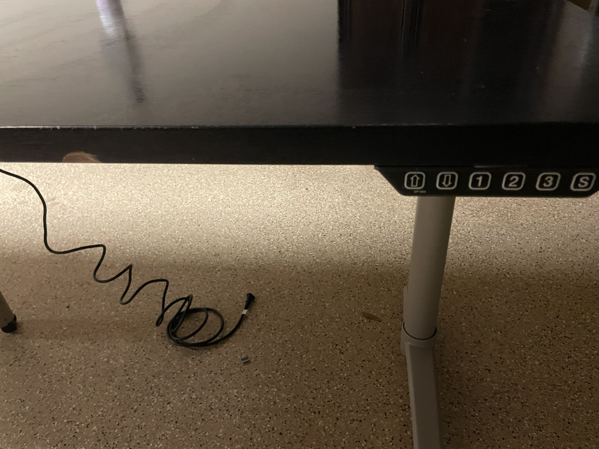 Modern electric height-adjustable standing desk in good condition. The desk functions perfectly and raises/lowers smoothly. The surface does have a few cosmetic scuffs from normal use, but it can easily be resurfaced or refinished if you want it to look brand new. Structurally solid and ready to use.