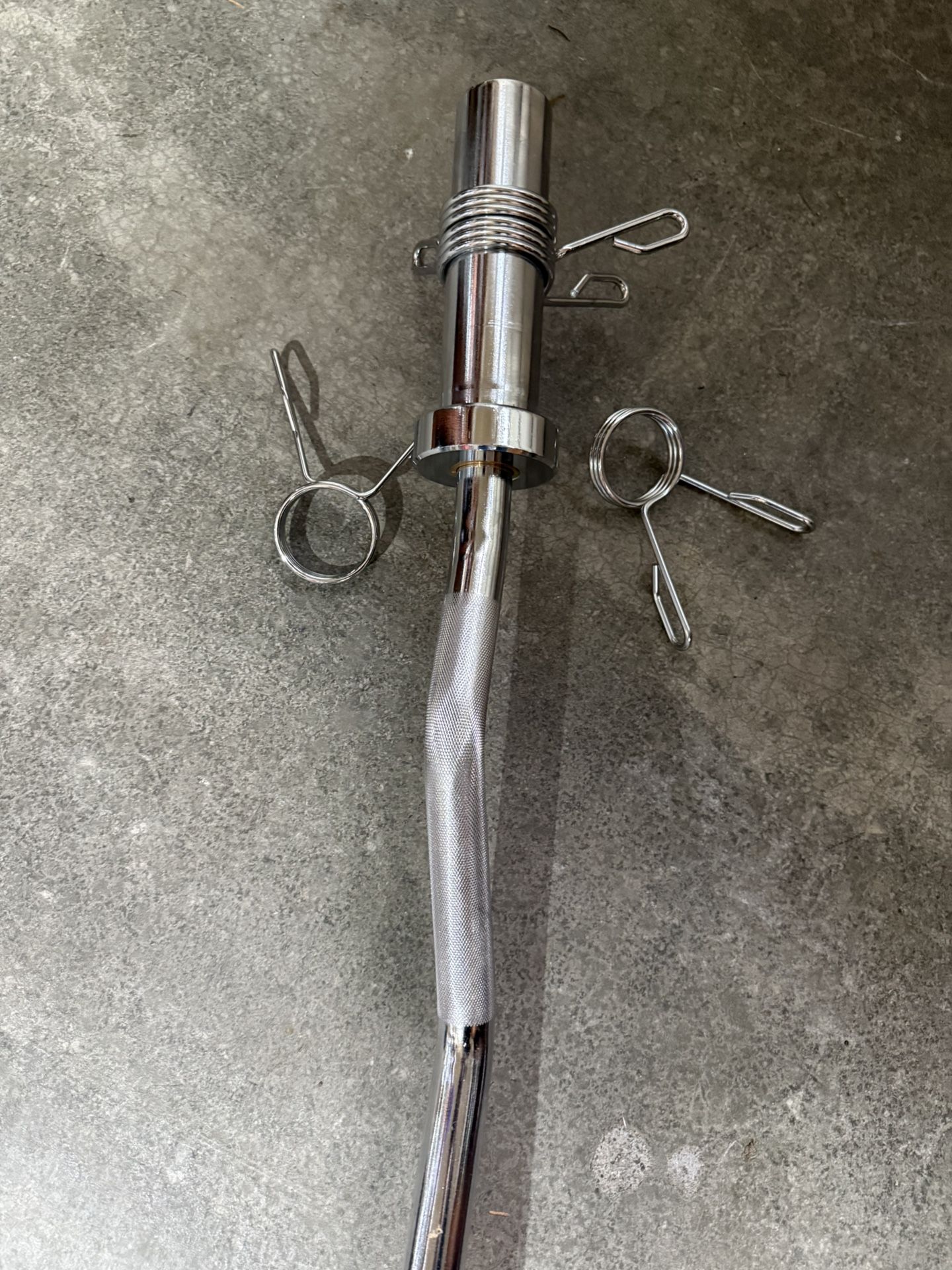 Top quality, very heavy bar and perfect condition with cramps. This is the best bar anywhere extra set of clamps included. Weight dumbbells