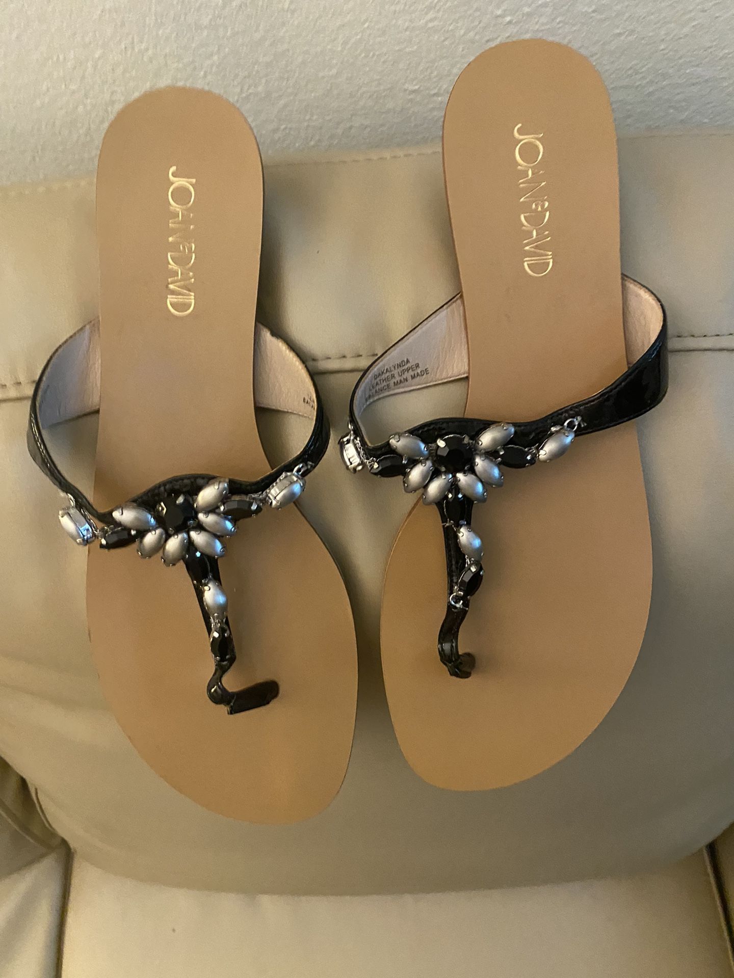 Joan & David (new) Black Dakalynda Sandals Patent Leather black beaded sandal Item # 1(contact info removed) Color-leather sole, patent black beaded Size 8 ½ M