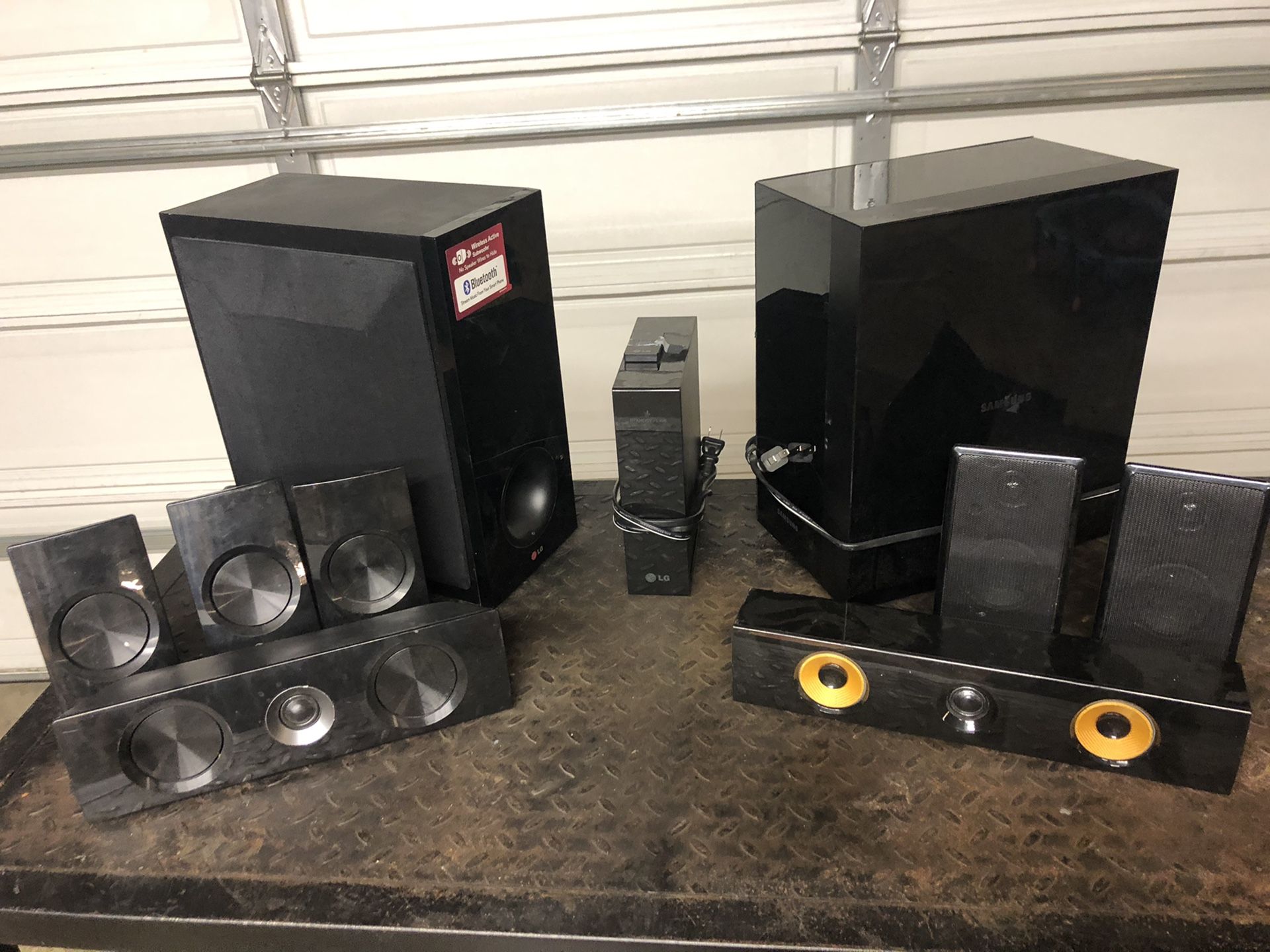Random surround sound speaker and subs Buy all or what you want $5 a speaker $15 a sub Make offer on all or buy what you need Samsung LG