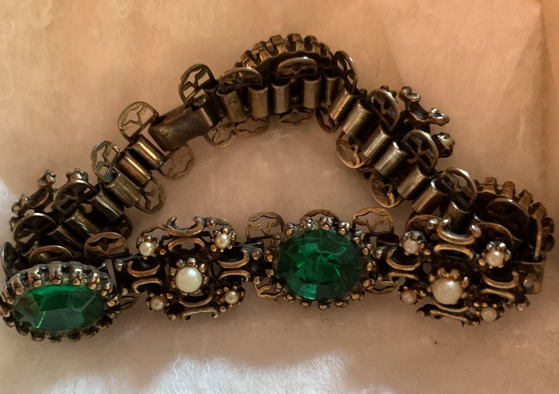 Vintage Chunky Edwardian Pearl Green Bracelet