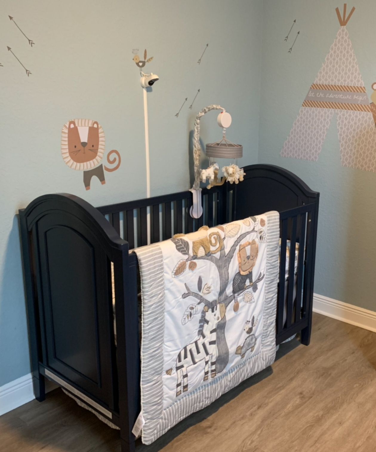 Navy blue crib with matching changing table. Matress and changing table pad is not inxluded. Pick up only and payment must be made in cash.