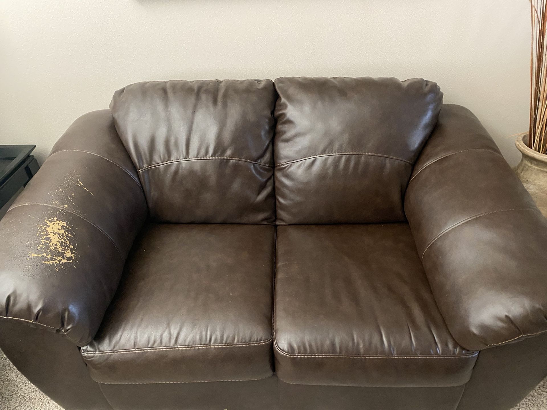 2 sofas, both have some peeling on them if someone wants to cover them. Both for $75 Peeling spots in picture. The rest of the sofas are fine.