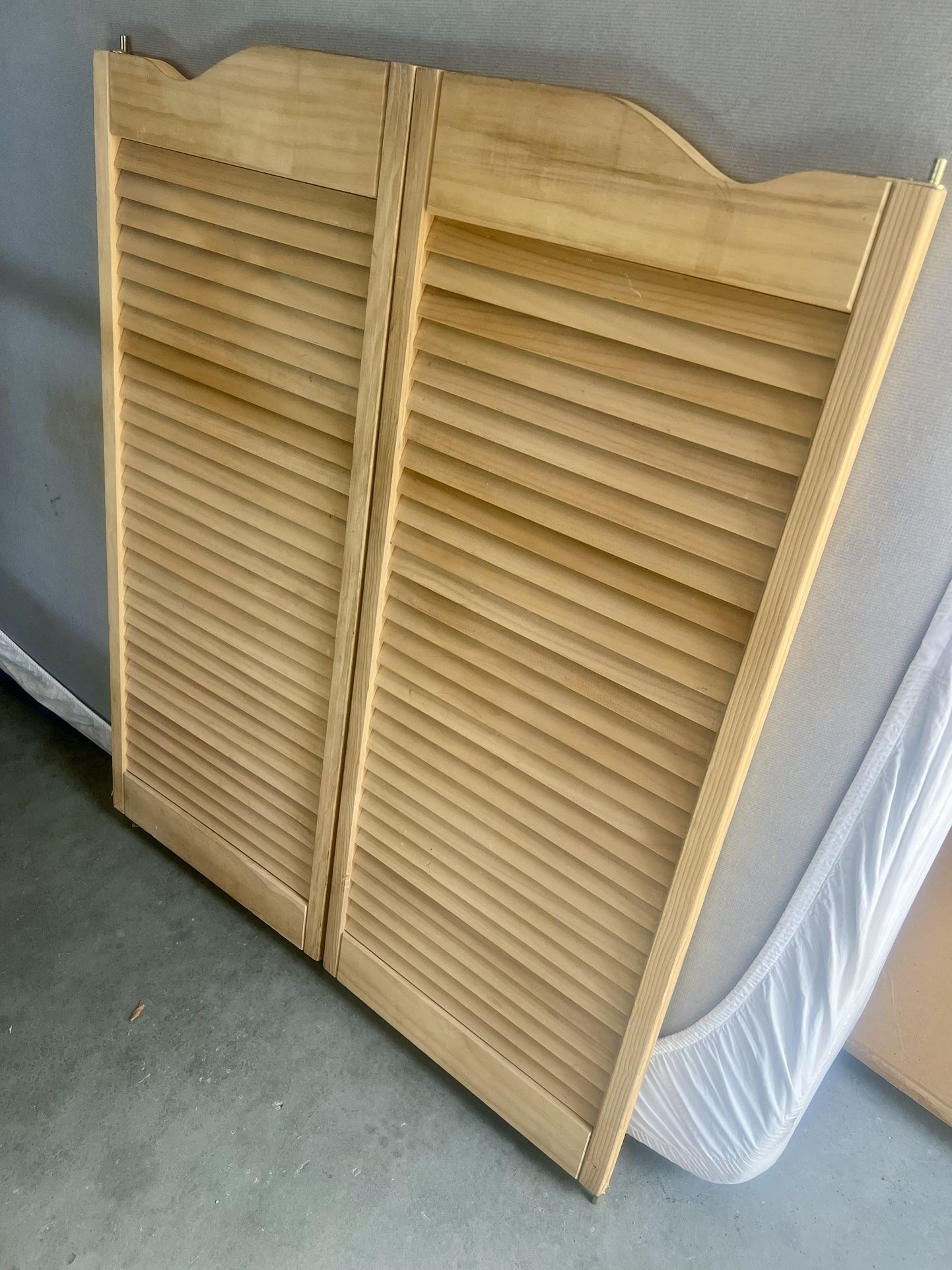 Wooden Saloon Swing Shutter Doors – 42” H × 35¼” W Classic Western-style wooden saloon shutter doors. Solid wood, sturdy, and full of character with normal wear and tear — just need a new home! Unfinished wood, great for painting, staining, or leaving natural for a rustic look. Dimensions: • Height: 42 inches • Width (total): 35¼ inches Condition: Used – normal wear and tear, solid structure, no major damage. Price: $100 OBO (or best offer)