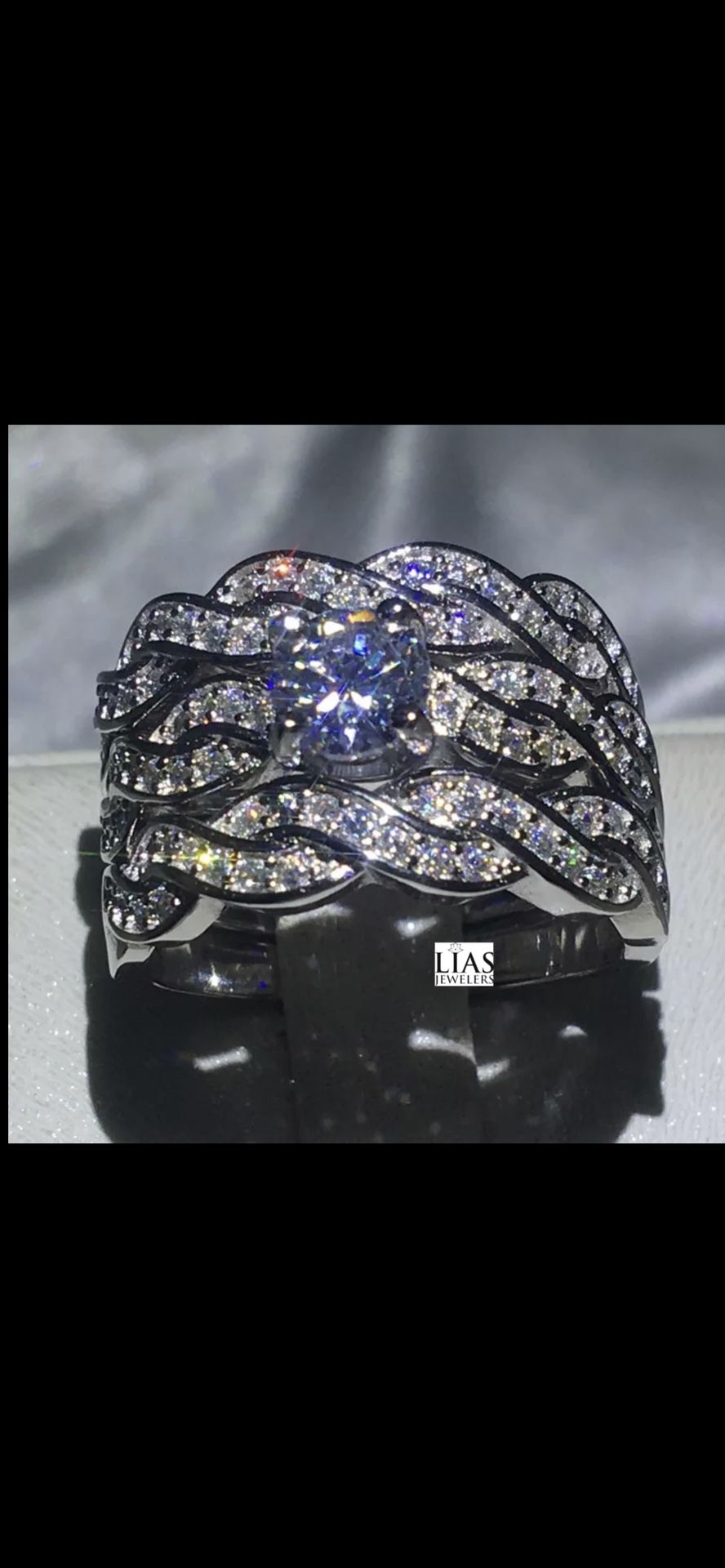 Brand new 18 k white gold filled with lab created diamonds wedding ring set, engagement ring. Available in most sizes! Also have men’s wedding ring, men’s wedding band, bridal set, engagement ring , wedding ring set
