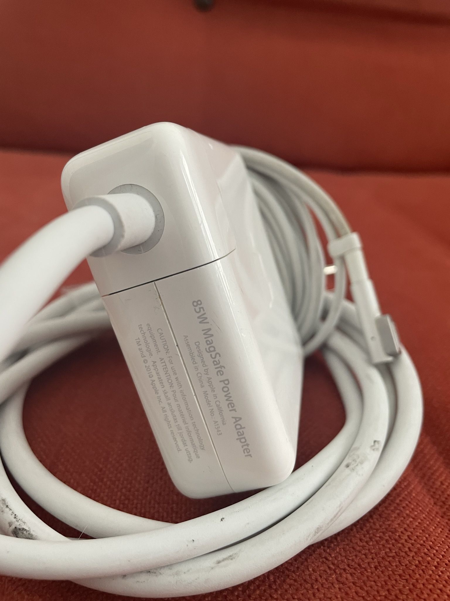Apple magsafe 1 original laptop charger. It’sw for old model apple MacBook. Usually macbooks which have a cdrom. Model year 2012 or older.