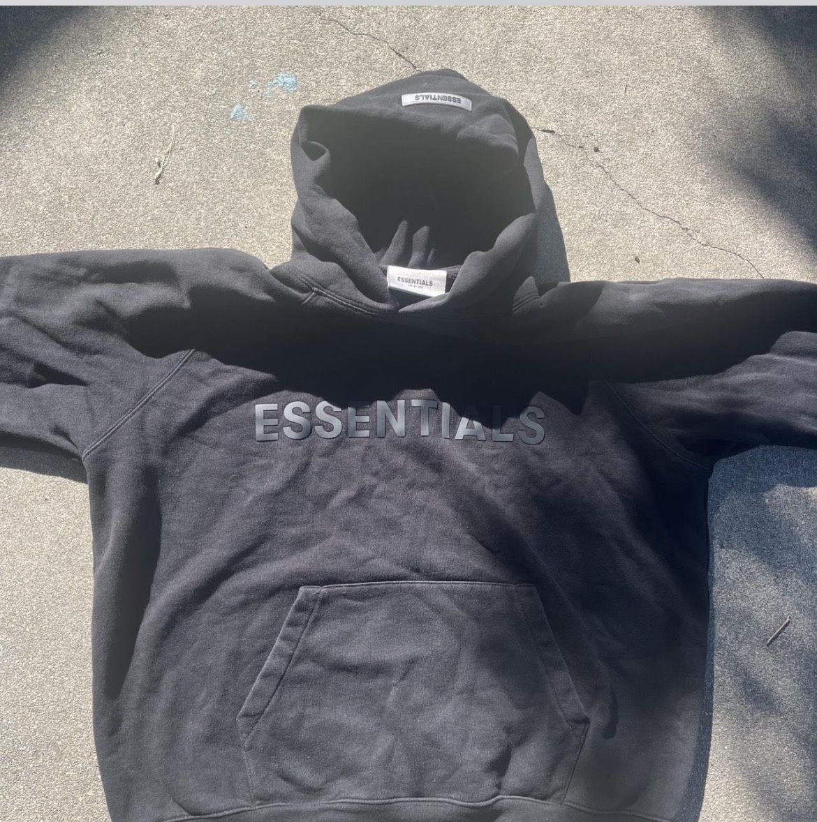 Essentials black cotton hoodie This is a pretty thick and heavy hoodie The size is a medium it does run a little big on me away.