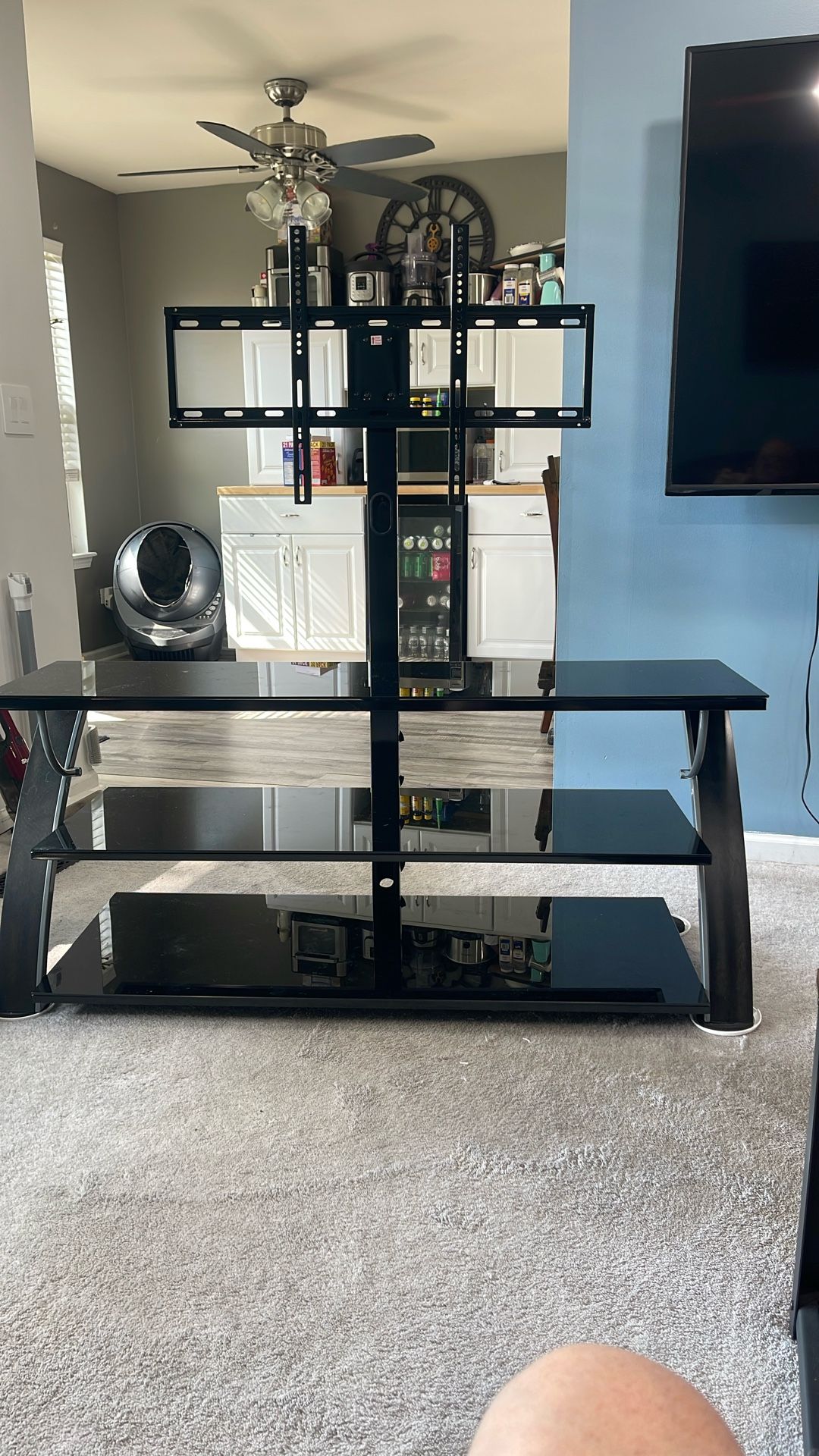 60” 3in1 tv stand. Can set a tv on the stand mount it on the stand or take the mounting plate off and mount right on a wall. Also swivels. Got the stand at Walmart 3 years ago and they about 140.00 for the same one right now. The price will be free but will take a 24 pack of Miller Lite bottles in trade for it. Just want to get rid of it.