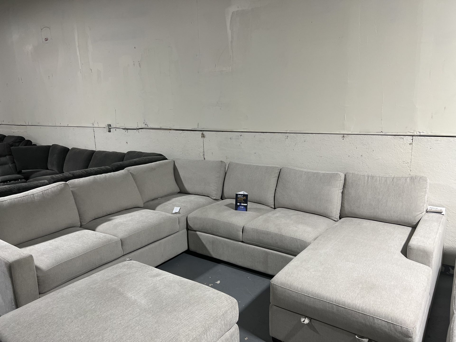 P Thomasville Glenn Fabric Sectional with Storage Chaise Financing is available Delivery available