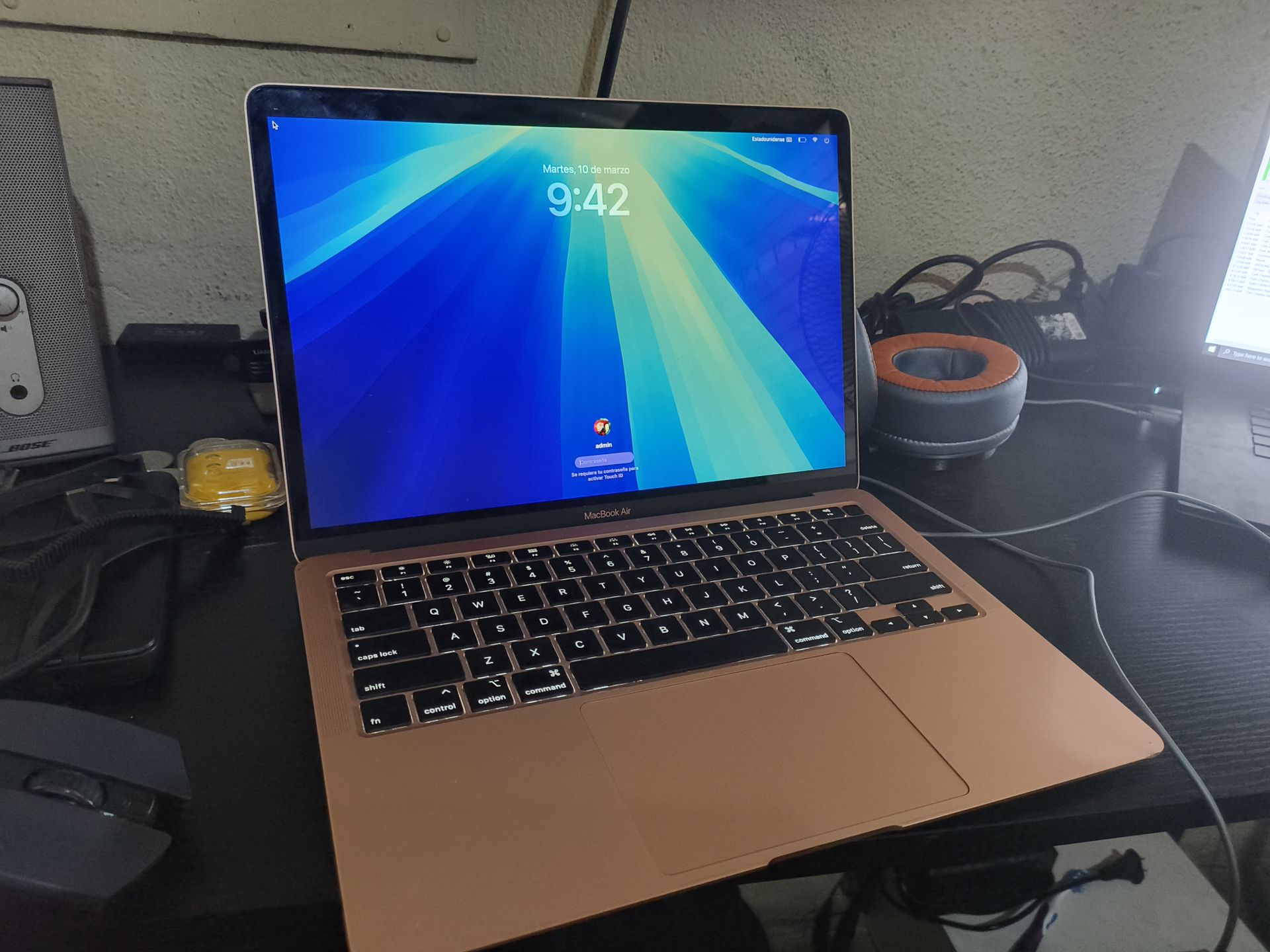 MacBook Air 2020 13" pink gold used good, Intel i7, 16gb ram, 256ssd, OS Sequoia 15.7.4 and Win 10pro on virtual machine with office Mac,adobe pdf on both sistem updated.
