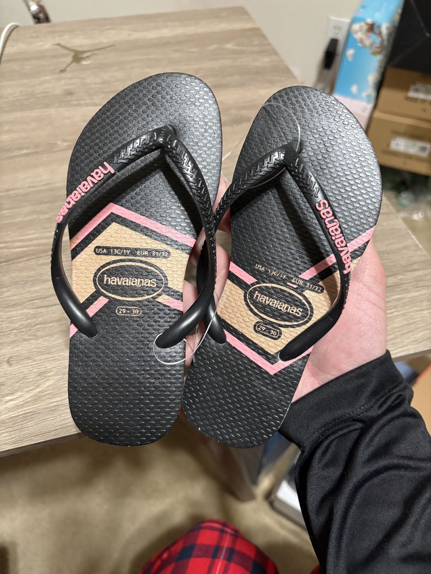 Size 13C / 1Y - Kids Havaianas Black and Pink Flip Flops Sandals