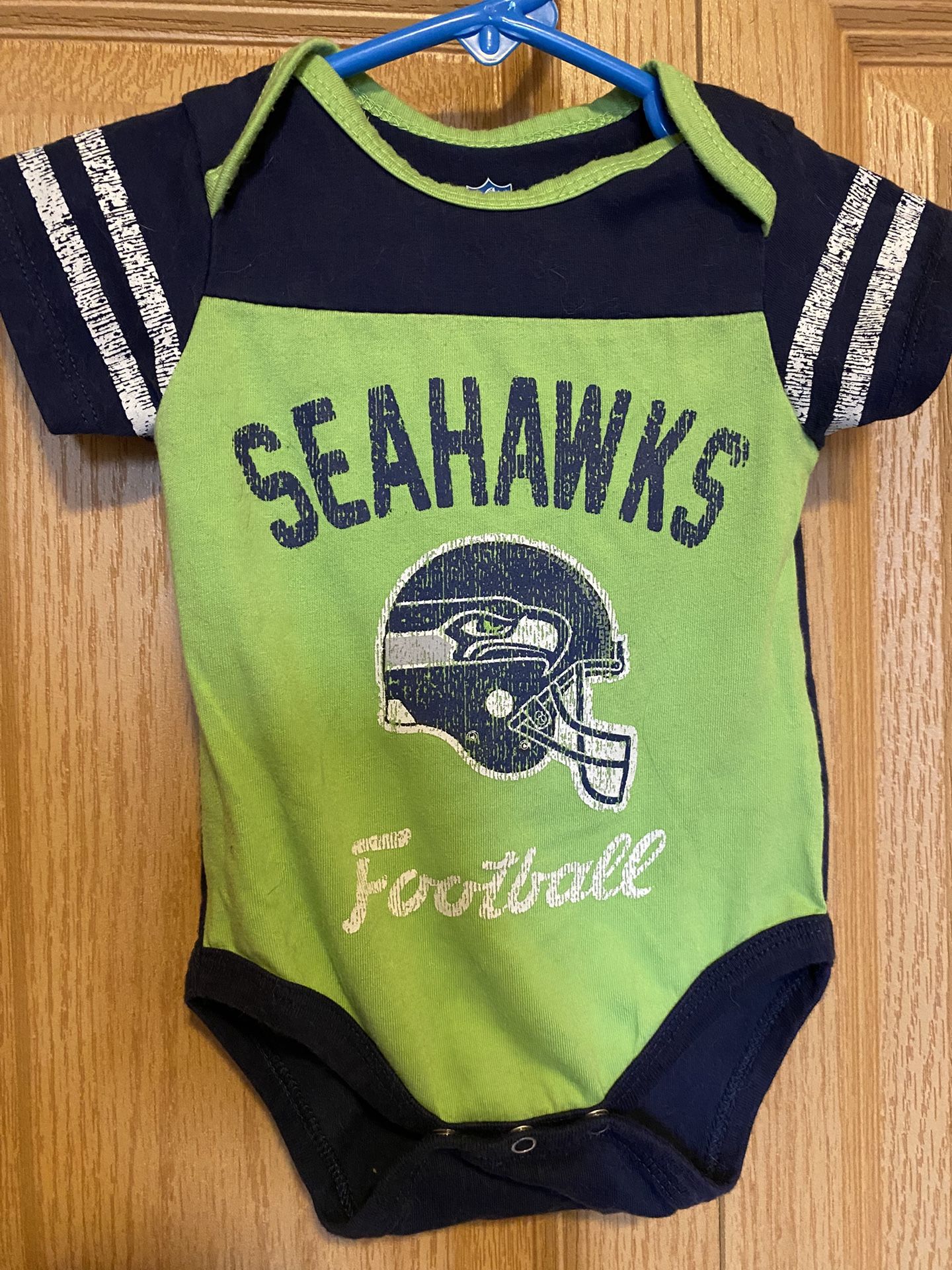 Seahawks infant onesie in size 0-3M. NFL brand - Baby boy boys girl girls top shirt football sports gear merch 0-3 month clothes clothing onsie