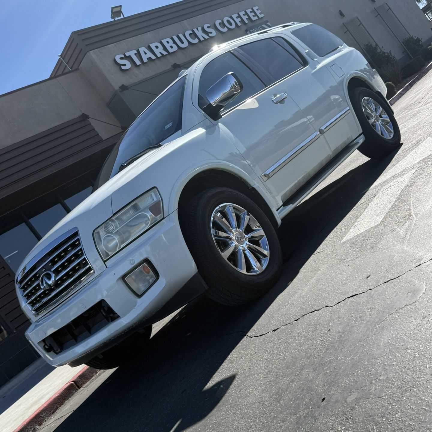 CLEAN TITLE! No dash warning lights, Original Texas vehicle, Fully loaded 2010 QX56 4WD, power windows door locks seats and trunk. Heated seats (front and rear), heated steering wheel, moonroof Working DVD player system with remote and headphones runs great. Registration current until August 2026. No rips in leather but does show wear in some areas. Third row seating and very spacious. New shocks front and rear, brakes and rotors all around, control arms and alignment. New tires also under transferable 60k mi warranty. Engine install 5k mi ago Update now at 191k Smog included