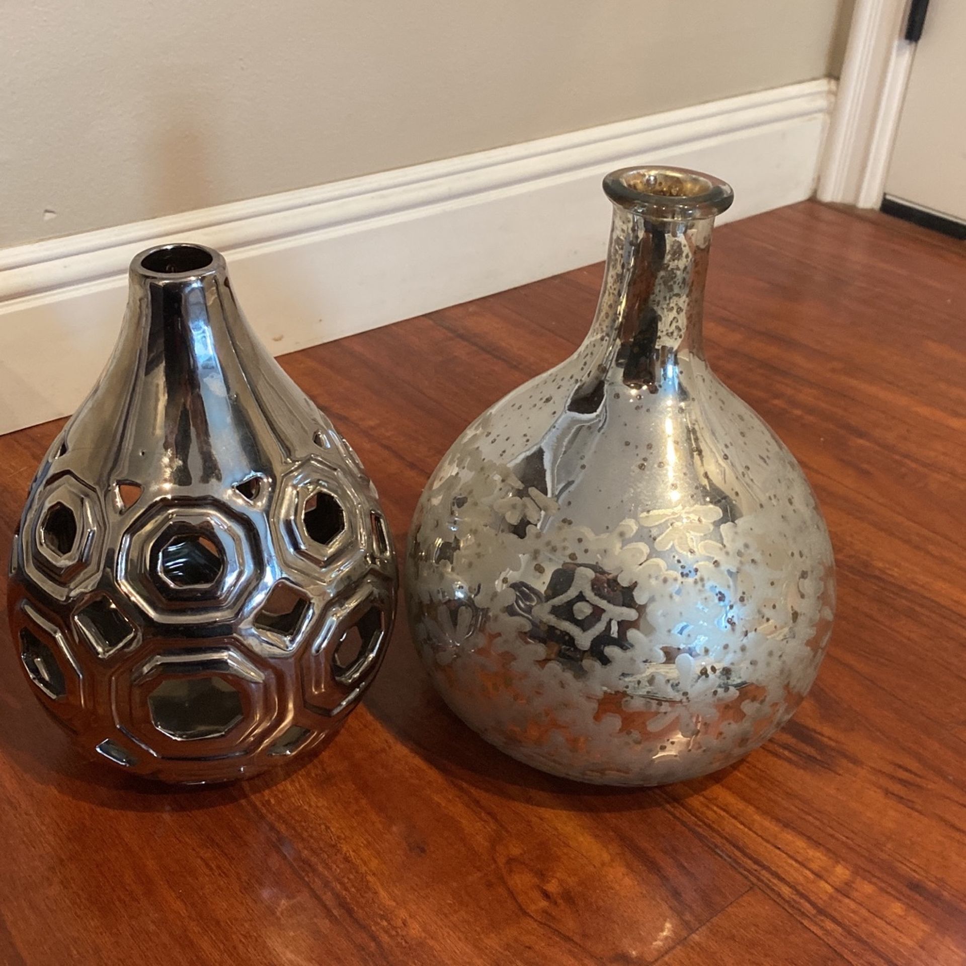 Two home goods vases Silver Mirrored Pick up in Buena Park