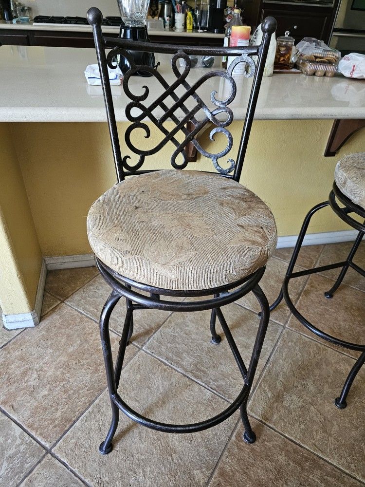 Bar stools 4 chairs $180 If purchase all 4 ($150) single $45 Dimensions 45"H x 28"Seat height 18" W Seat 18 x 18 round Powder coated, good condition Cushions are a little worn