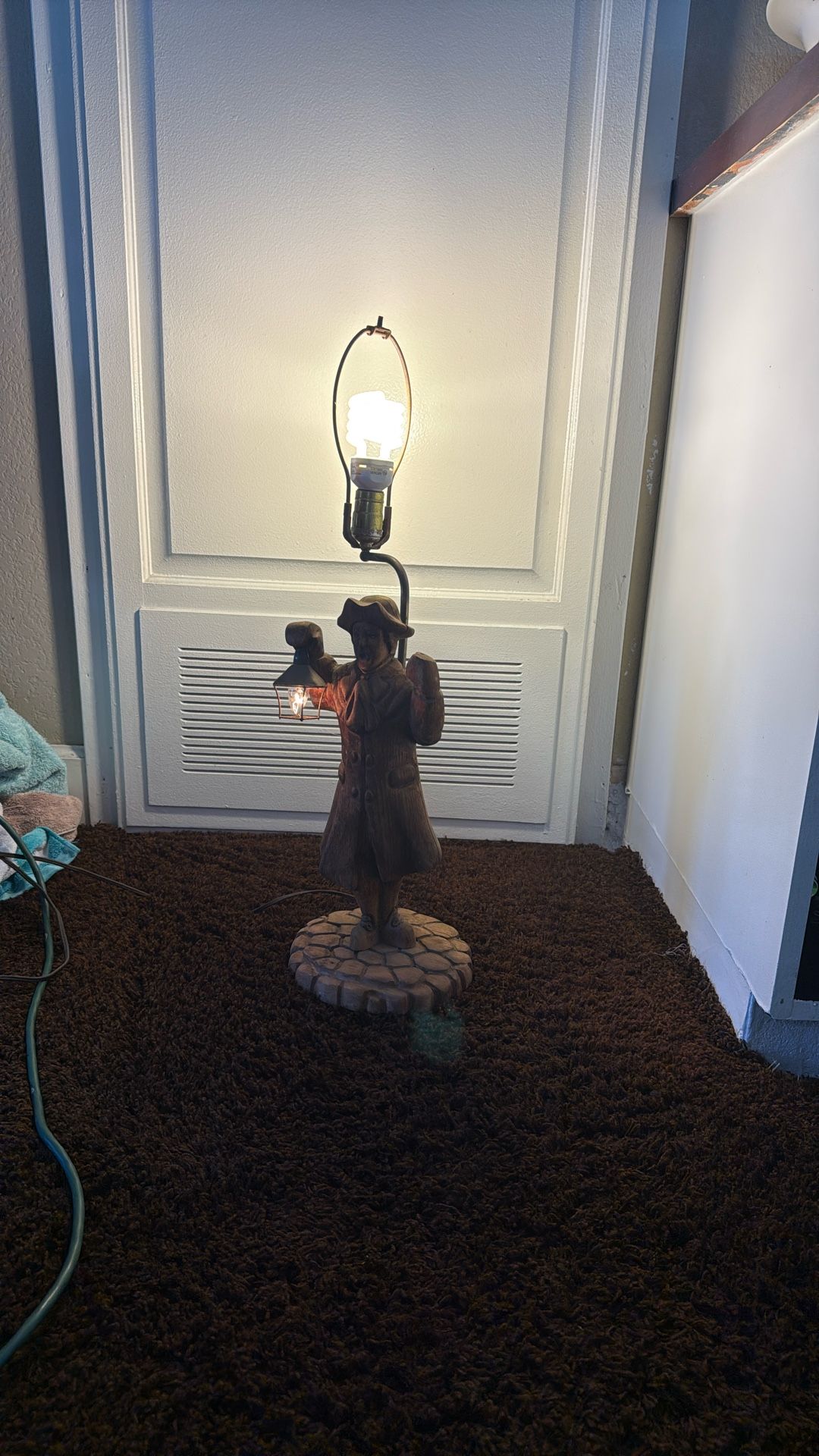 HANDMADE PAUL REVERE CARVED LAMP THREE WAY LIGHT LANTERN VINTAGE SOLID WOOD 24"