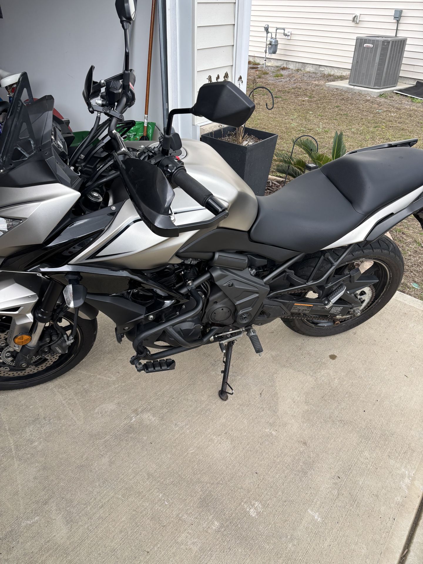 The 2017 Kawasaki Versys 650 is a versatile, 13,163 miles, middleweight adventure-tourer featuring a 649cc parallel-twin engine, 6-speed transmission, and standard ABS. It produces approximately 68-69 horsepower and 47-49 ft-lbs of torque, with a 5.5-gallon fuel tank and 33.1-inch seat height. It is known for its comfortable, upright riding position, adjustable windscreen, and agile handling. I have the side cases for it and stand lift. Myrtle Beach off 501